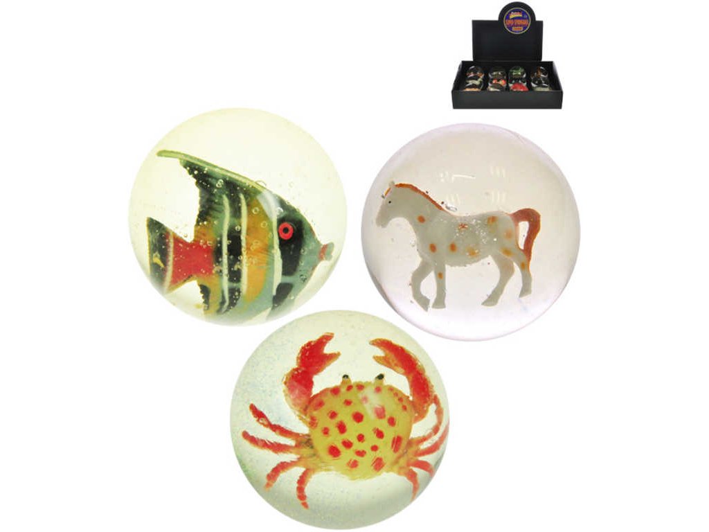 Originální velký transparentní skákací míček, uvnitř kterého najdeš nejrůznější zvířátka (rybička, koníček, krab, kočička ...).