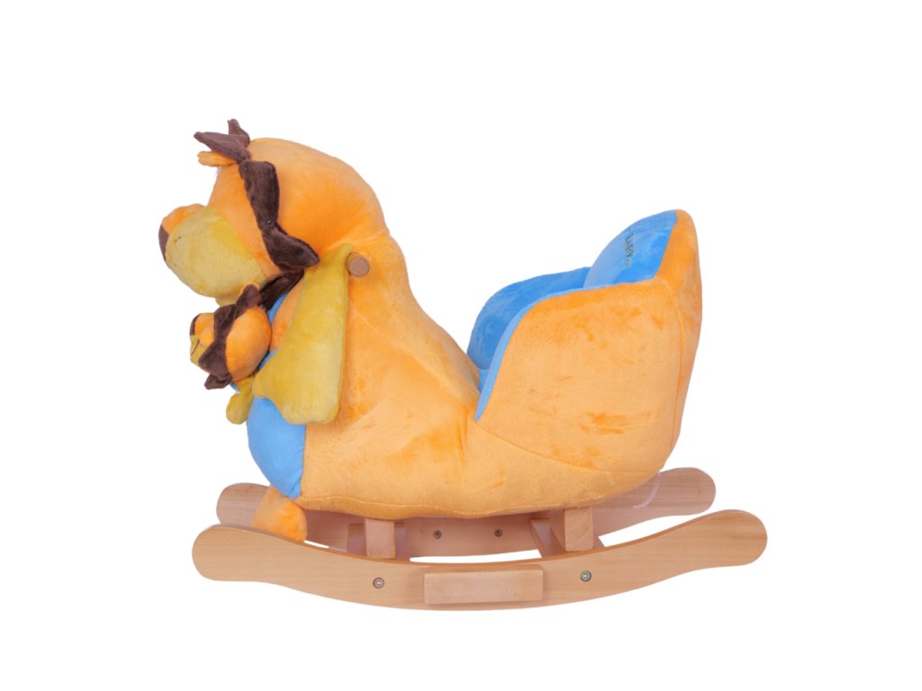Houpací lev s lvíčetem potěší každé dítě už od 18 měsíců věku. Stabilní dřevěná konstrukce s opěrkami na nohy, plyšovou výplní a pohodlným a bezpečným sedátkem zaručuje pohodlí a bezpečí při houpání. A to není všechno, lev přehrává příjemnou dětskou melodii a ve vaku na bříšku má lvíče. Díky hravému designu, pestrým barvám a roztomilým obličejům se houpadlo stane pěkným doplňkem dětského pokoje nebo herny. Houpání podporuje rozvoj rovnováhy, motoriky i koordinace pohybů. Kvalitní zpracování zaručuje dlouhou životnost i při každodenním použití. Testováno podle nejpřísnějších bezpečnostních norem EN 71. Hlavní vlastnosti: dřevěný rám s plyšovou výplnípřehrává příjemnou dětskou melodiivčetně vaku s lvíčetemse sedátkem a opěrkami na nohypodporuje rozvoj rovnováhy a koordinace pohybůdodáváno v rozloženém stavumontážní materiál včetně nářadí a návodu na sestavení je součástí balenínapájení 2x 1,5 V AA baterie (nejsou součástí balení)nosnost 20 kgvhodné od 18 měsíců