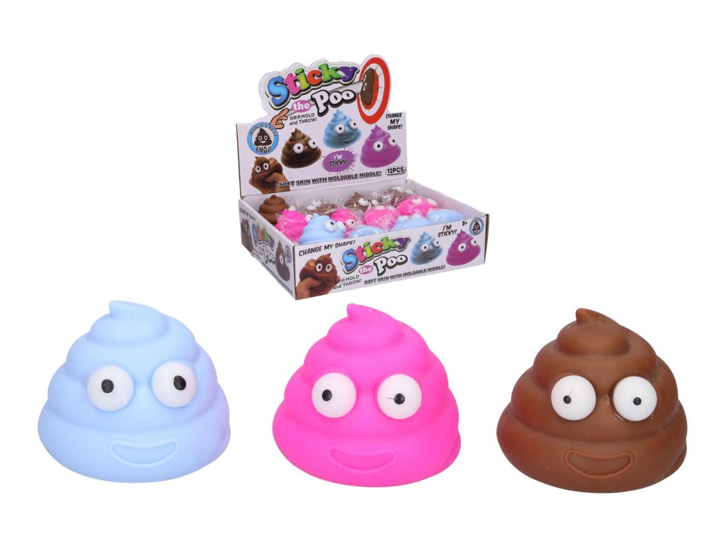 Hovínko mačkací antistresové guma 6cm elastické tvarovatelné 3 barvy v sáčku 12ks v boxu