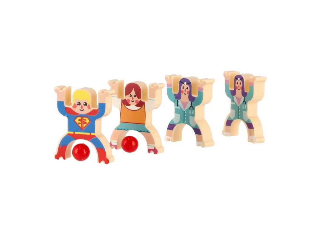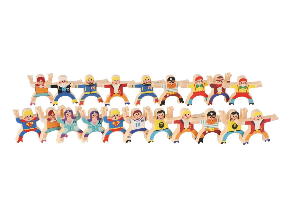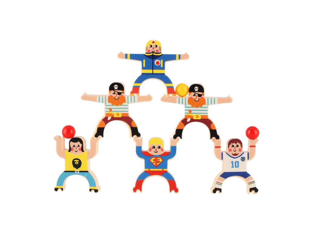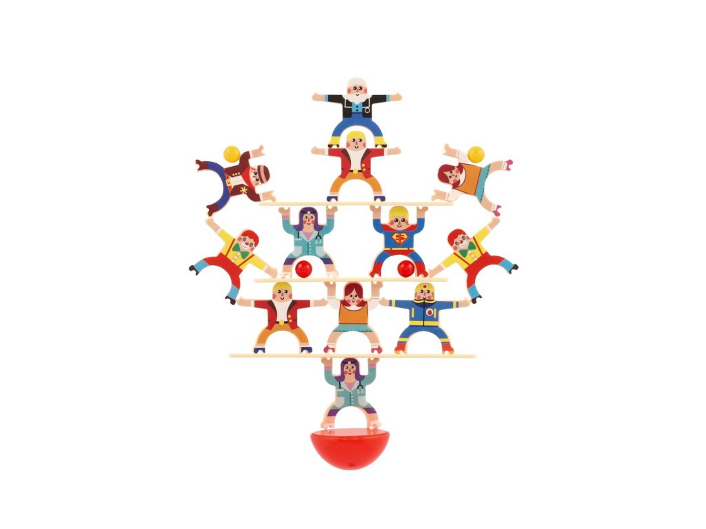 Dvacet plastových postaviček, se kterými si můžete zahrát balanční hru. Můžete jednoduše skládat postavičky na sebe. Ten, komu figurky spadnou, prohrál! Hra nabízí několik herních obtížností. Hra rozvíjí soustředění a koordinaci oko-ruka u starších dětí, ale i u dospělých.