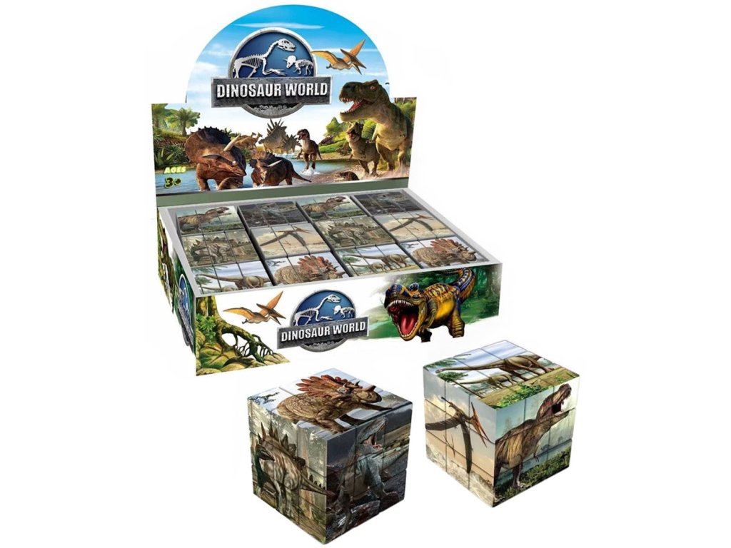Hra Kostka 3x3x3 (Rubikova), plastový skládací hlavolam s motivem Dinosauři. Skládačka s obrázky - na každé straně kostky odlišný motiv. Velikost 6cm.