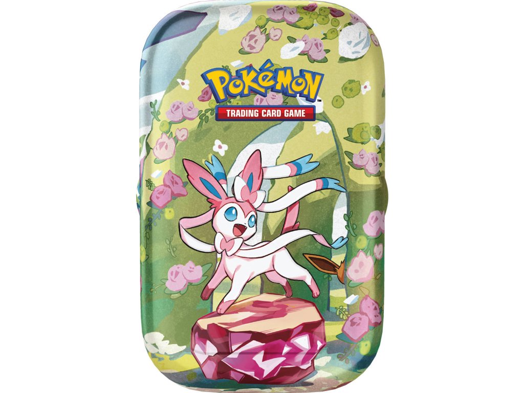 Pokémon Prismatic Evolutions Mini Tin je malá plechovka s motivy Eevee evolucí. Obsahuje dva balíčky, házecí minci s motivem Eevee a art kartičku. Na plechovkách existuje až osm různých motivů: Flareon, Vaporeon, Jolteon, Sylveon, Umbreon, Espeon, Leafeon a Glaceon. Kromě Pokémon karet najdete v každé plechové krabičce i obrázek s motivem z krabičky a házecí minci s motivem Eevee. Tento produkt je vhodný pro ty, kteří by rádi rychle pořídili celou sadu, či vlastnili originální sealed balení.