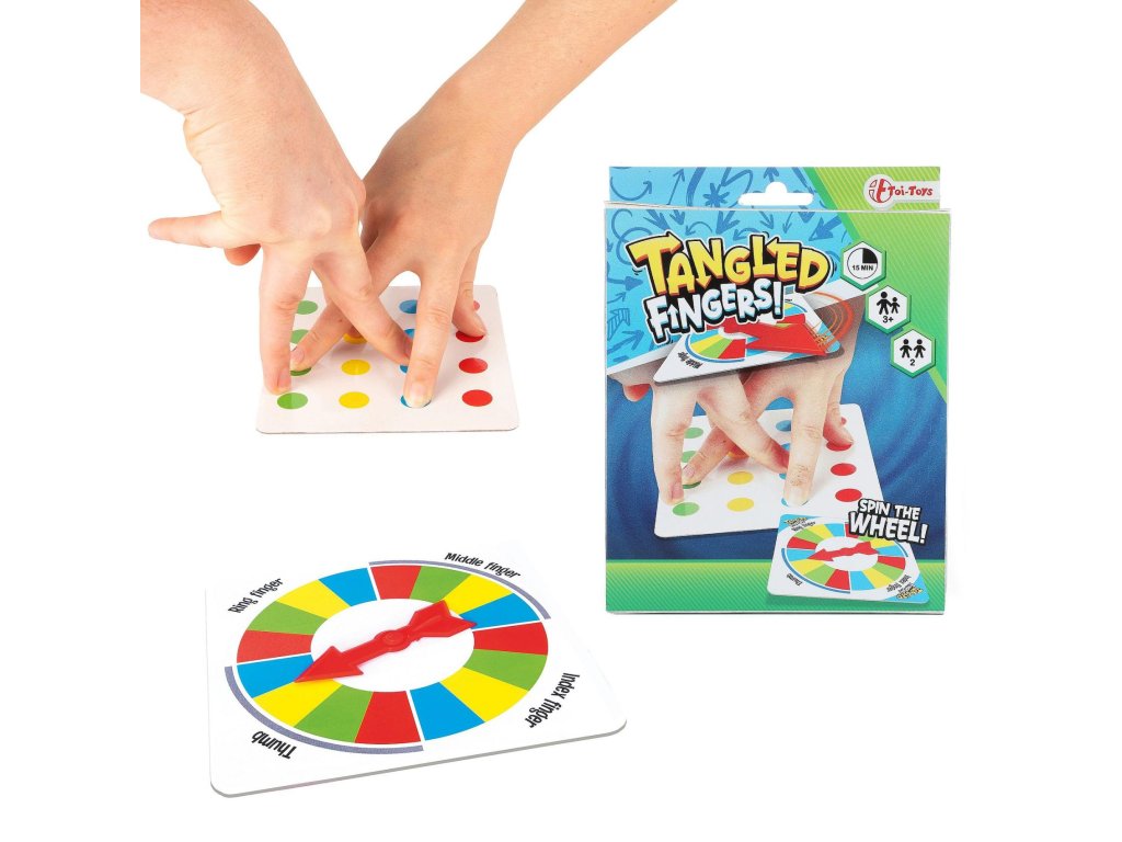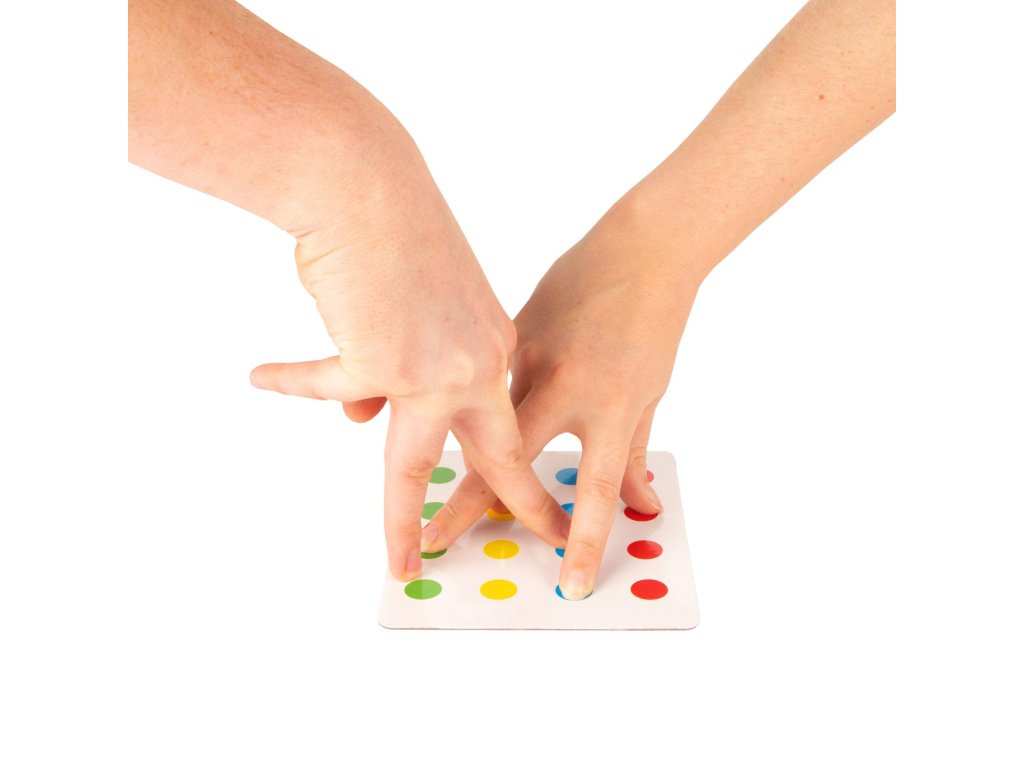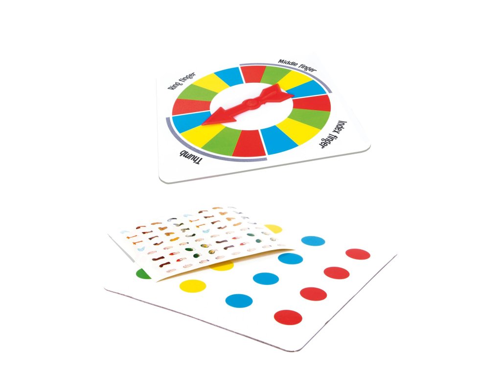 Otočte kolem a položte prsty na správnou barvu. Hra je výzvou pro flexibilitu a rovnováhu hráčů, když kroutí prsty, aby odpovídaly pokynům, což často vede k zábavným a zamotaným pozicím rukou. Je to zábavná a poutavá hra, kterou si můžete užít s přáteli a rodinou na menším prostoru.