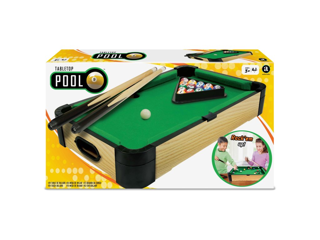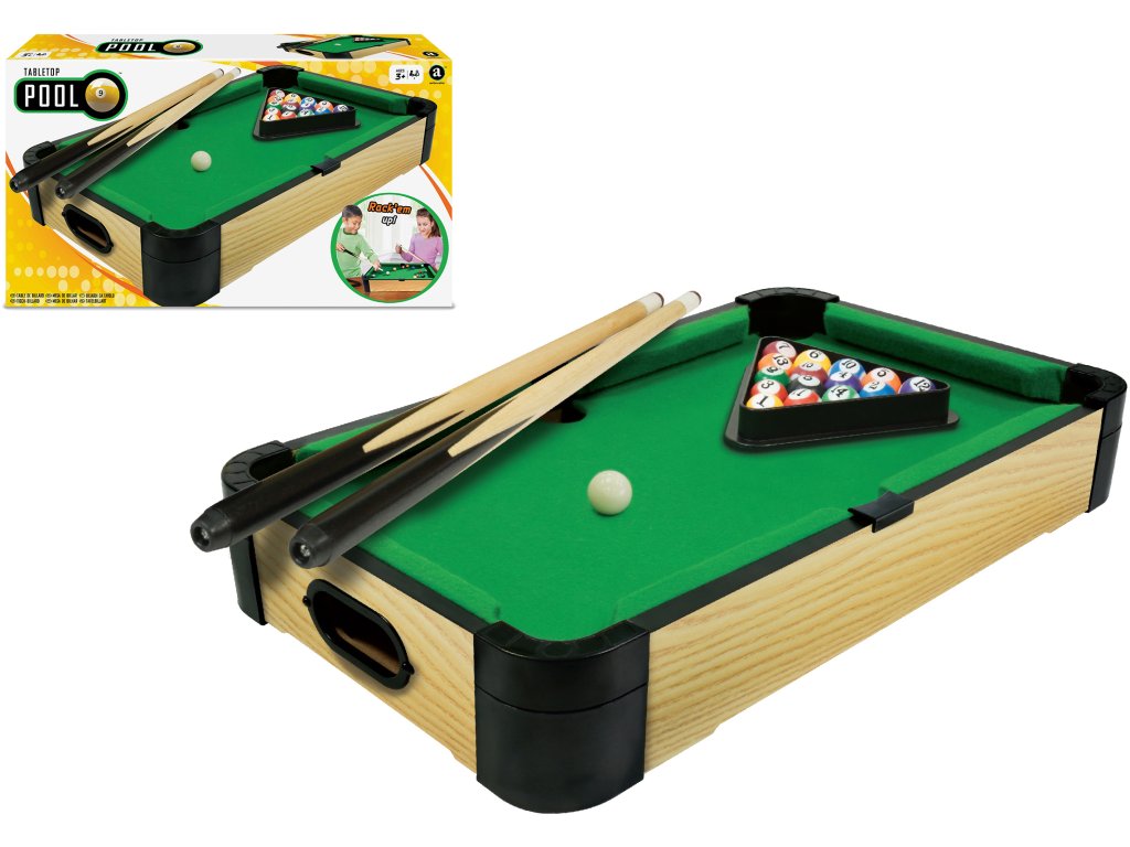 Kompaktní kulečníkový stůl o velikosti 40 cm nabízí klasickou hru s "osmičkou". Hra obsahuje 16 koulí – bílou a 15 barevných (7 pruhovaných, 7 plných a černou osmičku). Po rozstřelu si hráči nárokují buď pruhované, nebo plné koule a cílem je legálně zasáhnout všechny své koule a nakonec černou osmičku do vybrané kapsy. Stůl je dodáván s trojúhelníkovým stojanem na koule a bílou koulí, připravený k rychlé hře. Po rozstřelu se rozhoduje, kdo bude cílit na kterou skupinu koulí, přičemž platí pravidla klasického kulečníku. Hra je určena pro 2 hráče, kteří se střídají v tazích, dokud jeden z nich nedosáhne vítězství podle pravidel. Hráči mohou využít možnost „koule v ruce“ při faulu soupeře (zasazení bílé koule do kapsy). Vhodné pro děti od 3 let, není vhodné pro menší děti kvůli malým dílům. Barvy a detaily se mohou mírně lišit od vyobrazení.