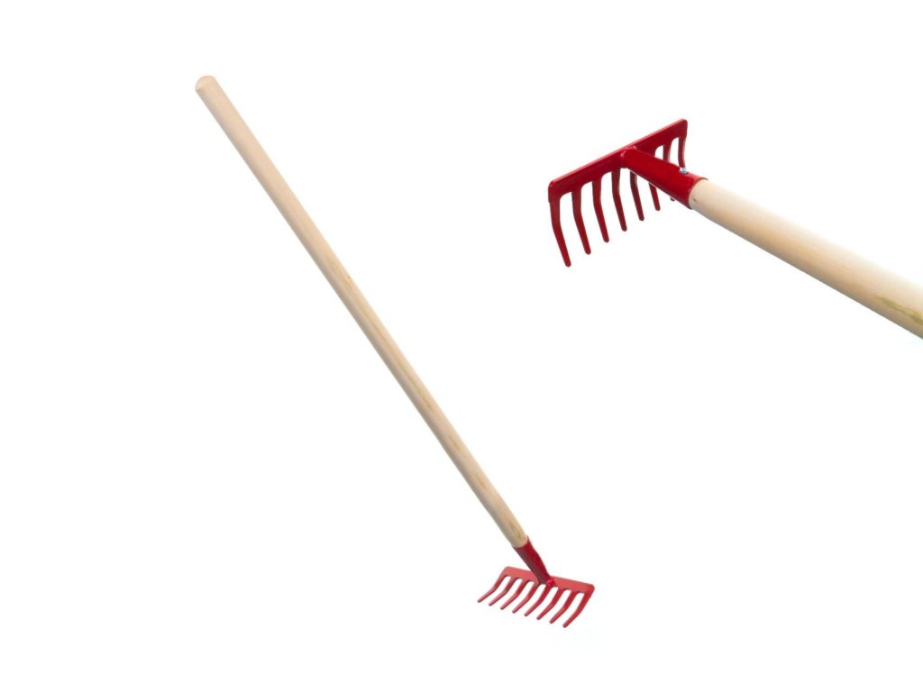 Zahradní nářadí pro děti udělá z práce na zahradě zábavu, pomáhá rozvíjet motoriku a motivuje děti k pobytu na čerstvém vzduchu. Pomozte v nich rozvinout vztah k práci a přírodě. Červené hrábě kovové s dřevěnou násadou o celkové délce 80 cm.