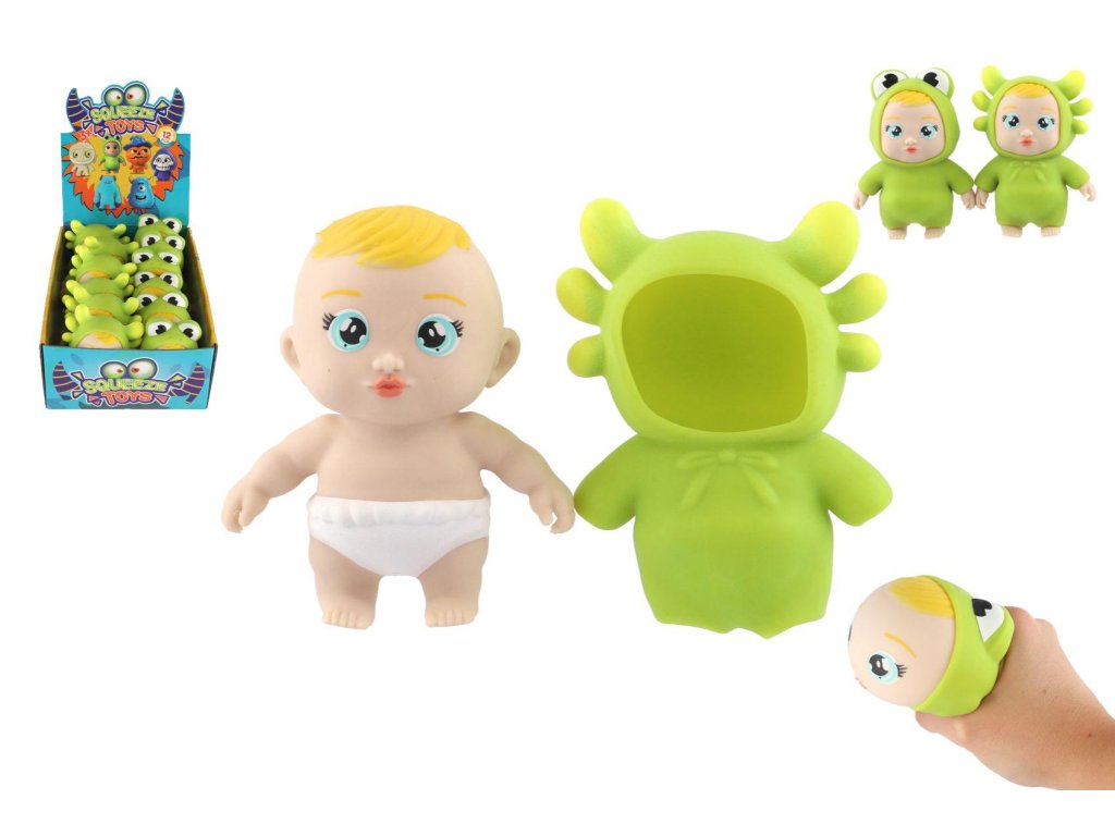 Roztomilé antistresové miminko v elastickém zvířecím kostýmu je ideální hračkou pro děti i dospělé, kteří si potřebují odpočinout a uvolnit napětí. Hračka je vyrobena z měkkého a příjemně pružného silikonu, který se po zmáčknutí vždy vrátí do původního tvaru.