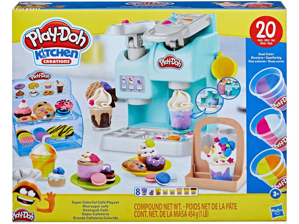 Hra na kavárnu: děti mohou předstírat, že provozují vlastní kavárnu! Pomocí kávovaru na výrobu kávy z Play-Doh si mohou připravit kávu, čaj a další barevné falešné nápoje.