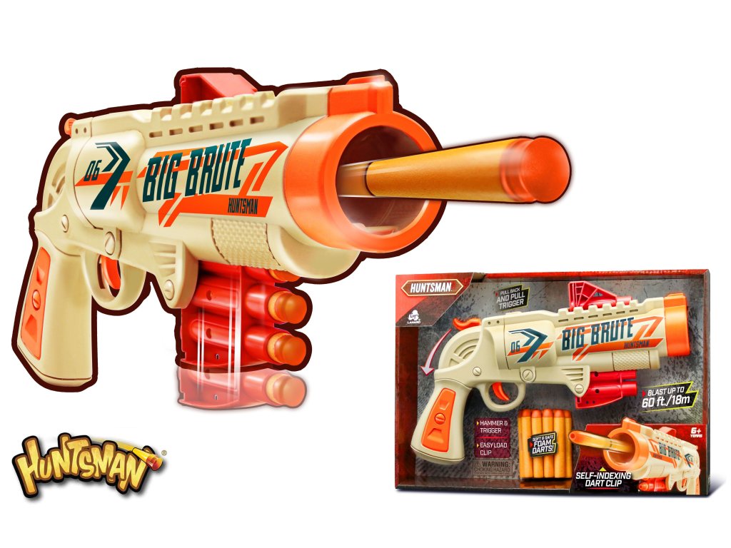 Dostřel až 18m. Obsah balení - pistole, zásobník na 6 střel, 9 pěnových střel. Natáhnutím kohoutku v zadní části zbraně se zásobník posune na další střelu, stiskem spouště zbraň vystřelí.