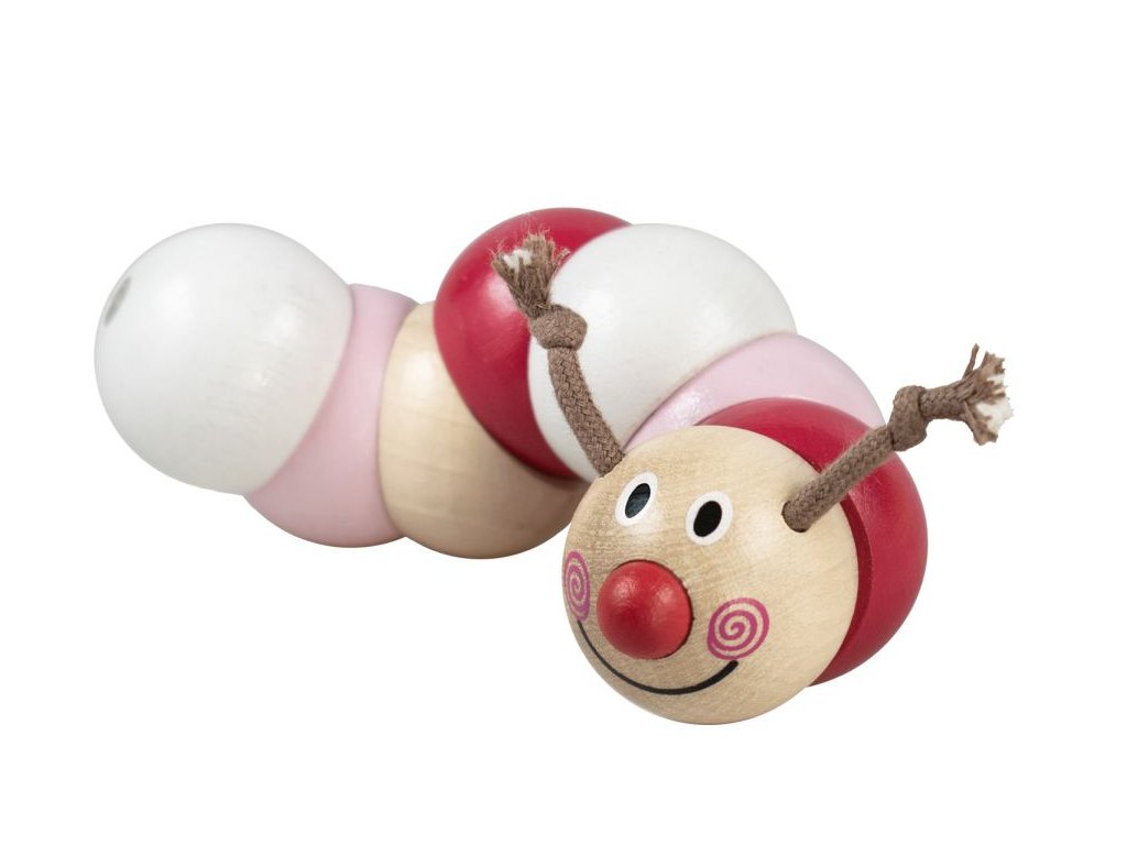 Hračka v podobě housenky z barevných dřevěných perlí navlečených na gumě, které se pohybují, točí a ohýbají. Vhodná k procvičování jemné motoriky rukou Vašich dětí již od 6ti měsíců. V EKO přírodním balení.