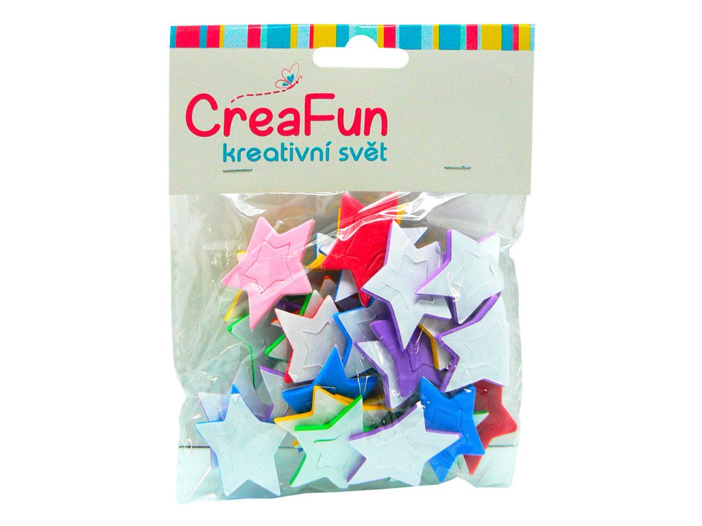 Mix barevných dekorací s motivem hvězdy, které si můžeš díky samolepící straně nalepit všude, kam tě napadne. Dekorace je vyrobena z velmi příjemného materiálu na dotyk. - Věk: 3+ - Balení: 30 ks - Průměr: 30x35 mm - Materiál: EVA (ethylenvinylacetát)