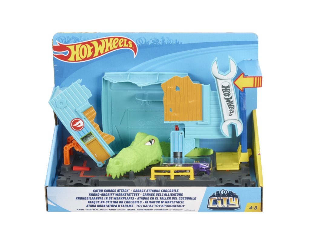 Město Hot Wheels® je uvězněno pod nadvládou příšer! Použij svá Hot Wheels® a vydej se na záchranu města! Připrav se na pořádné kaskadérské kousky, probojuj si cestu těmito tematickými herními sety a zachraň město Hot Wheels®. Všechny městské části z kolekce Hot Wheels® město lze jednoduše spojit dohromady díky novému spojovacímu systému, který je kompatibilní i se všemi tvými oranžodrahami. Vyber si svůj herní set nebo je sesbírej všechny a užij si spoustu zábavy plné dobrodružství a kaskadérských kousků.