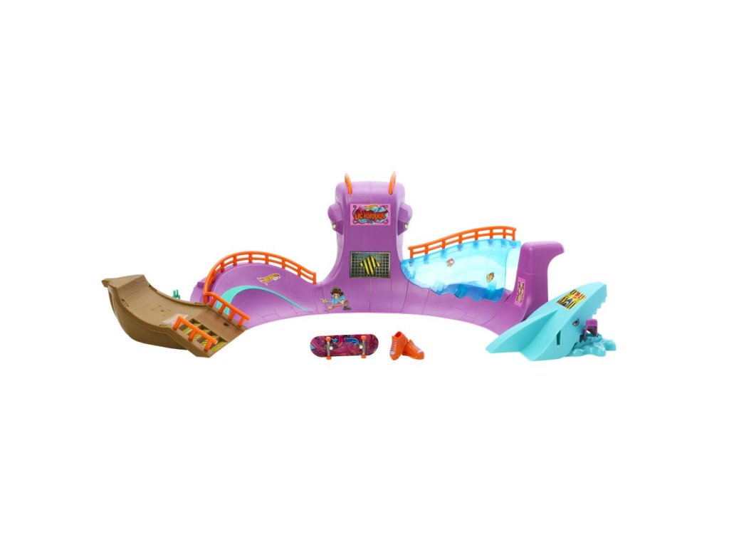Rozjeďte to stylově na skate sadě Hot Wheels Skate™ Octopark. Seskočte z obří hlavy chobotnice a pusťte se do epické jízdy na fingerboardu, která obsahuje grind raily, vertikální quarterpipes a překvapení v podobě žraločího chřtánu. Součástí balení je jeden exkluzivní, kompletně sestavený fingerboard a pár odnímatelných skate bot. Do úložného prostoru na zadní straně se vejdou další tři prkna a pět párů bot (další prkna a boty se prodávají samostatně.) Barvy a provedení se mohou lišit. Obsahuje 1 sadu Hot Wheels Skate™ Octopark Skate Set s 1 exkluzivním fingerboardem a 1 párem skate bot.