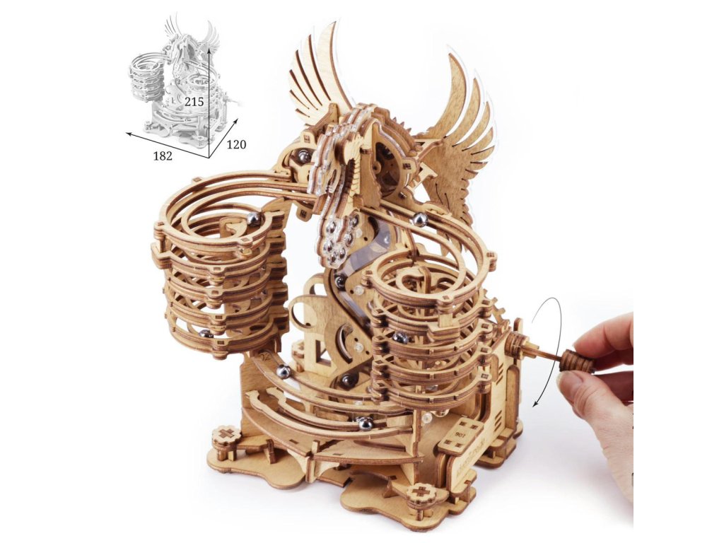 Potěšte své blízké dárkem a podpořte tak rozvoj jejich technických dovedností. Sestavte si vlastní kuličkovou dráhu, otáčejte klikou, vyvážejte kuličky výtahem nahoru a sledujte, jak se řítí dolů. Pomocí přepínače můžete zvolit, jakou cestou se vydají. Všechny dílky jsou precizně vyřezány laserem a vyrobeny z udržitelného vysoce kvalitního březového dřeva. Dílky do sebe přesně zapadnou bez použití nástrojů a lepidla, aby výsledek byl stabilní a odolný. Návod k sestavení je součástí balení. Hlavní vlastnosti: 260 dílků a 15 kuličekdoba sestavení 6 hodinvyrobeno z březového dřevasestavení bez použití lepidla či nástrojůnávod k sestavení je součástí balenívhodné od 14 let