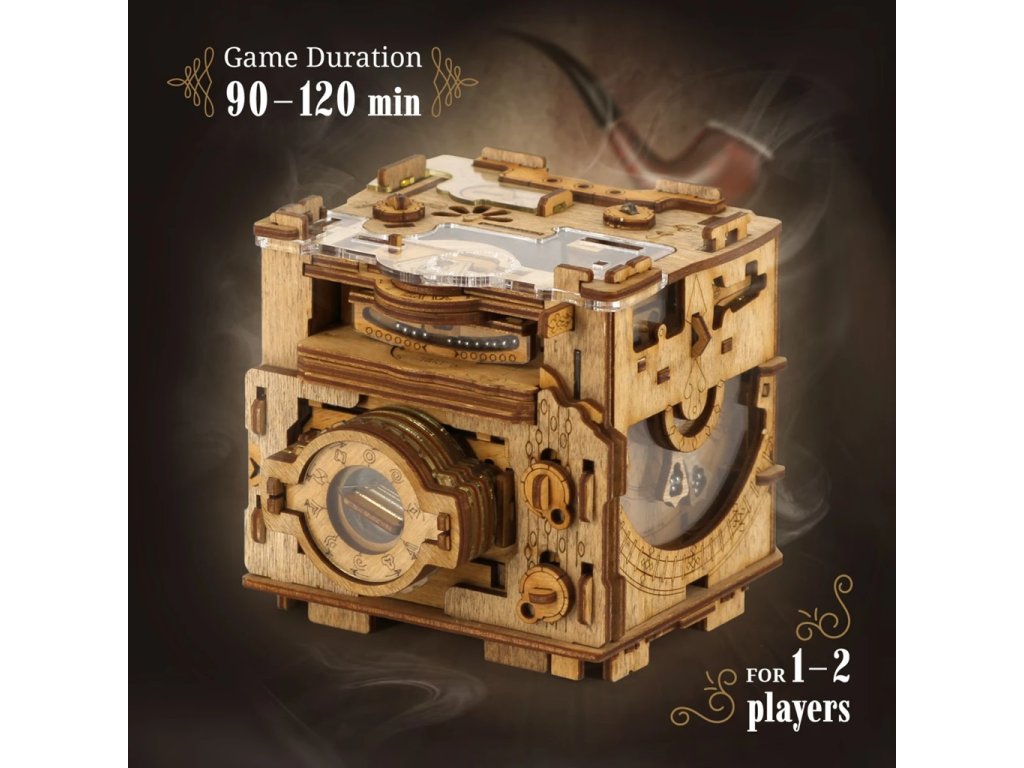 Už žádný nudný balící papír! Věnujte dárek s překvapením a zažijte strhující zábavu Chcete darovat peníze, šperk nebo jiný drobný dárek? A chcete předat dárek skutečně originálním způsobem? Spojte překvapení se zkouškou důmyslu a trpělivosti. S hlavolamem v inovativním designu vyrobeným z březového dřeva neuděláte chybu. Nenechte si ujít vzrušující zážitek ze hry. A nemusíte si hrát sami, zapojte celou rodinu nebo přátele. Hlavolam je pečlivě vyroben z přírodního materiálu a všechny jeho části byly přesně vyřezány nejlepší laserovou technologií. Příběh: Londýn 2023. Při inventarizaci v archivech Scotland Yardu byla objevena nevyzvednutá zásilka z roku 1914. Po rozbalení byl odhalen předmět připomínající fotoaparát. Kamera však místo běžného mechanismu obsahovala záhadné symboly a zámky. Byla přiložena následující poznámka:"Vážení detektivové,Během všech těch let jsem vyšetřoval ty nejzáhadnější případy. Nyní je čas, abych odešel do důchodu, a tak jsem se rozhodl svěřit své celoživotní dílo jednomu z Vás, nejtalentovanějšímu a nejschopnějšímu detektivovi. Nechávám vám tento svůj vlastní výtvor — fotoaparát se zašifrovaným mechanismem. Otevřete fotoaparát a zjistěte identitu mého nástupce!S pozdravemS.H."Zkoumání rukopisu a další spolehlivé důkazy pomohly určit, že zásilku neposlal nikdo jiný než Sherlock Holmes! Ve Scotland Yardu se nikomu nepodařilo vyřešit poslední detektivovu záhadu. Nyní vám předáváme záhadnou kameru. Jsme přesvědčeni, že se vám podaří vyřešit hádanku a odhalit identitu nástupce Sherlocka Holmese. Hlavní vlastnosti: doba hry 60-90 minuthra pro 1-2 hráčebox plný hádanek a rébusů vyrobeno ručně z přírodního dřeva součástí je dřevěný stativzabaleno v jedinečné dárkové krabičcelze použít opakovaněvhodné od 14 let VAROVÁNÍ! Níže uvedená videa obsahují spoilery řešení! Prosím, sledujte pouze první 2 minuty, pokud si chcete užít hádanku a vyřešit hlavolam sami.
