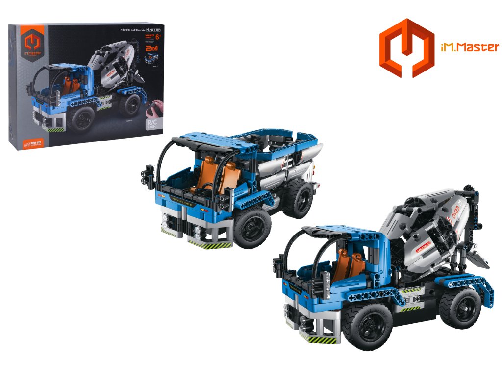 iM.Master Stavebnice Nákladní auto a domíchávač 2v1 RC. Velikost 26x12x17 cm. Z jedné sady lze postavit nákladní auto nebo domíchávač, Na dálkové ovládání. 3xAAA do ovladače a 3xAAA do auta nejsou součástí.