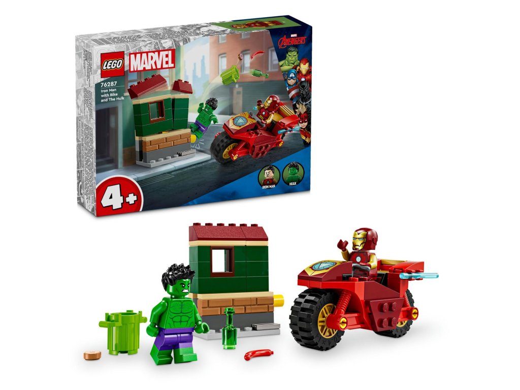 Potěšte všechny malé superhrdiny nebo fanoušky LEGO® touto sestavitelnou dobrodružnou stavebnicí Avengers. Stavebnice LEGO Marvel (76287) Iron Man s motorkou a Hulk je navržená tak, aby dětem od 4 let pomohla zvýšit sebedůvěru, soustředění a schopnost řešit problémy. Stavebnice LEGO Marvel obsahuje minifigurky Iron Mana a neuvěřitelného Hulka, k tomu navíc Iron Manovu sestavitelnou motorku a sestavitelný dům. Děti aktivují funkci, která budovu zhroutí (což se stává často, když je Hulk poblíž!) a pak ji znovu postaví, právě včas na Hulkův další výbuch. Součástí stavebnice je začátečnická kostka s rámem vozidla, která dětem pomůže se stavěním. Intuitivní návod najdete v barevném obrázkovém průvodci. Pro ještě větší digitální zábavu mohou stavitelé přibližovat a otáčet modely pomocí intuitivní aplikace LEGO Builder. Dobrodružné stavebnice LEGO Marvel 4+ potěší celou rodinu. Dospělí mají možnost předat potomkům své stavitelské dovednosti a sdílet tak se svými začínajícími staviteli významné vývojové milníky.