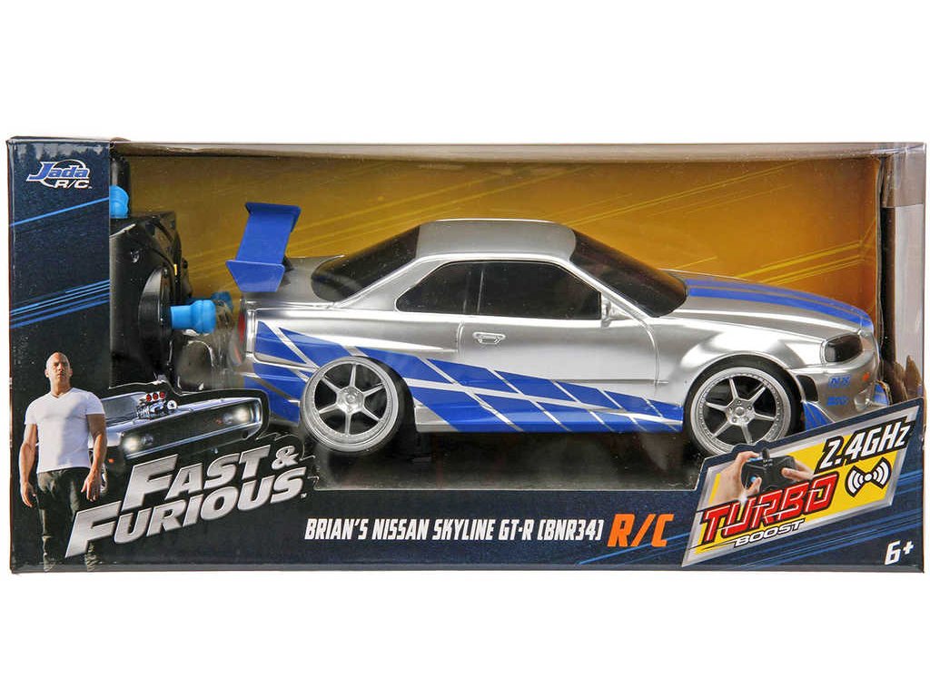 Brianovo RC auto Nissan Skyline GT-R (BNR34) na dálkové ovládání z akčního filmu Rychle a zběsile, pro všechny jeho fandy. 2 kanály (jezdí vpřed, vzad, vlevo a vpravo). Turbo funkce. Hračka na