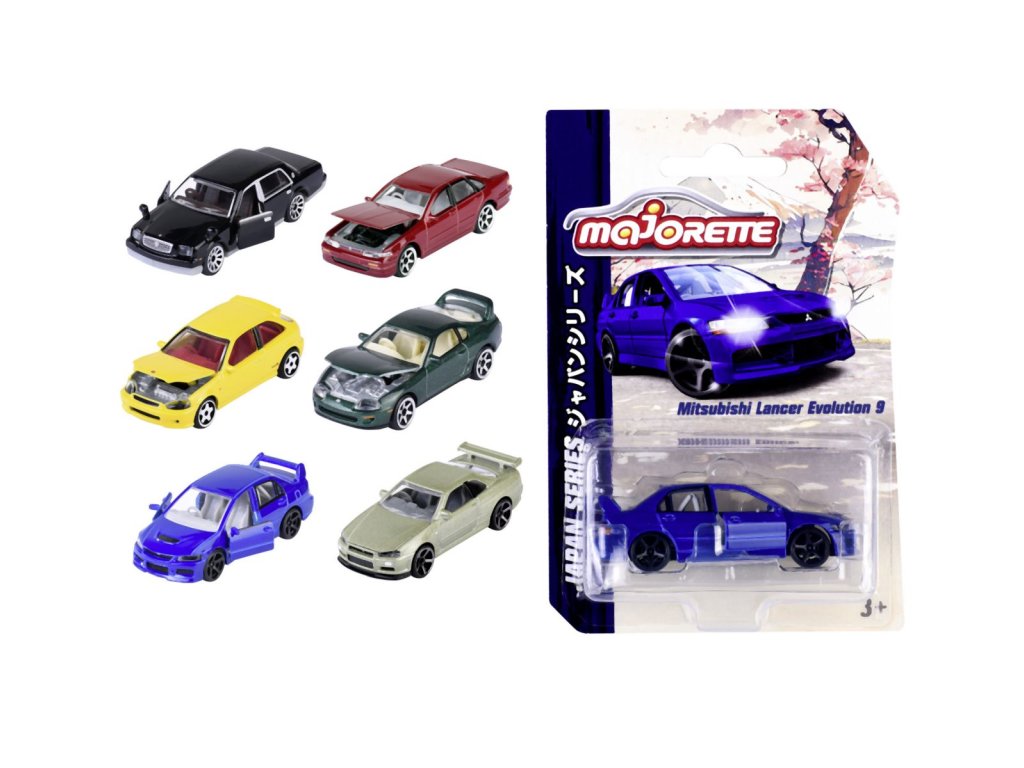 Kovové autíčko z prémiové kolekce Japan Series na volnoběh. S jednou otevírací částí (dveře/kapota).V kolekci je 6 druhů autíček: Toyota Supra JZA80 zelená, Toyota Century černá, Honda Civic Type R EK9 žlutá, Nissan Cefiro červená, Nissan Skyline GT-R (R34) zelený, Mitsubishi Lancer Evolution 9 modré. Délka autíčka 7,5 cm. V měřítku 1:64.