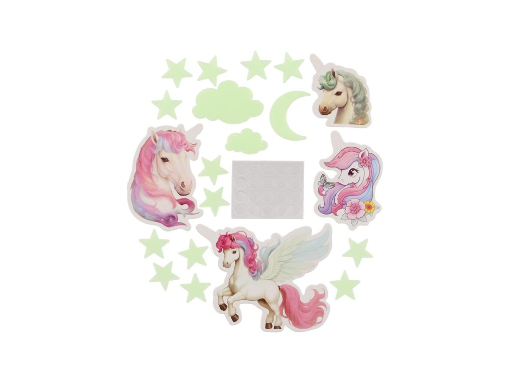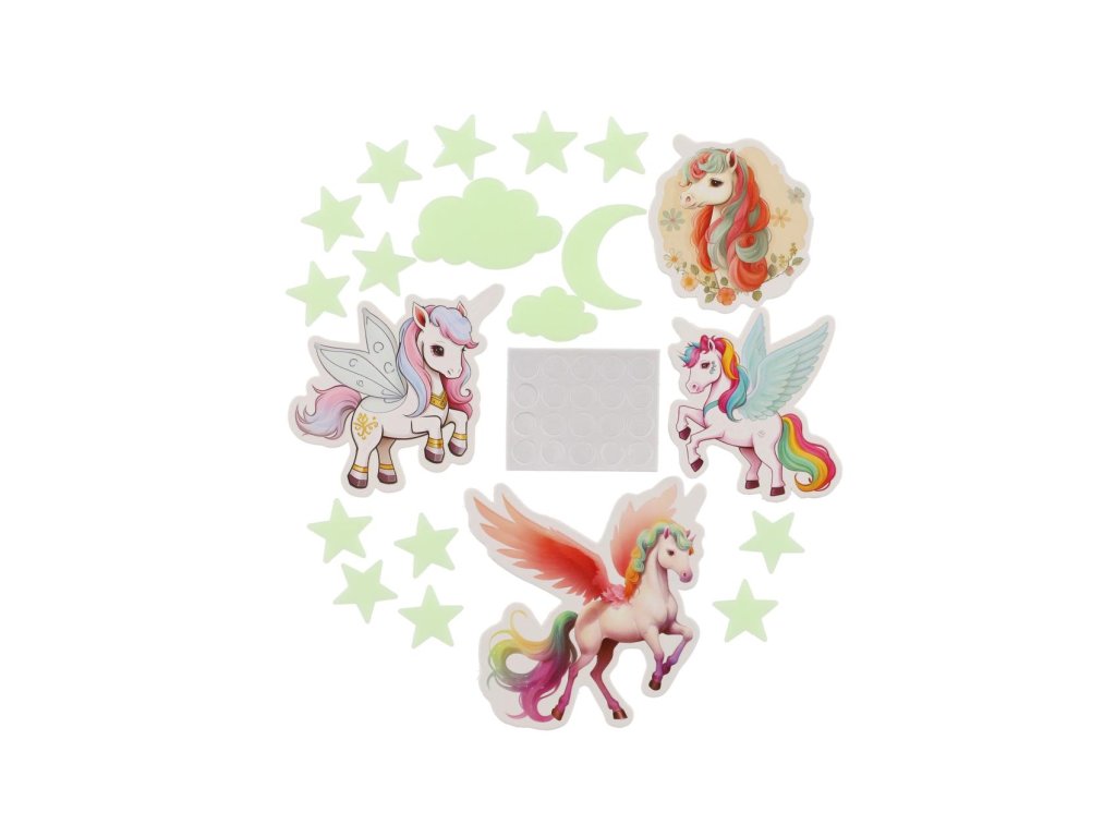 Jednorožci na zeď/stop svítící ve tmě papír/plast 2 druhy na kartě