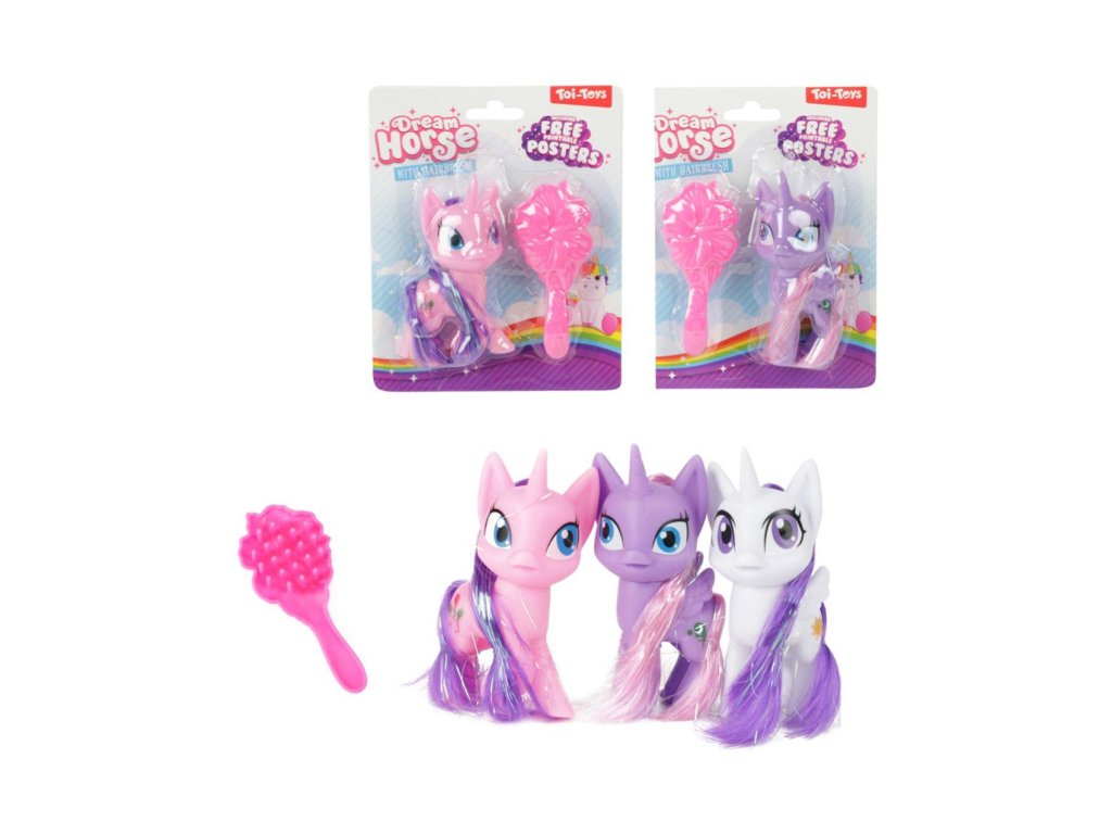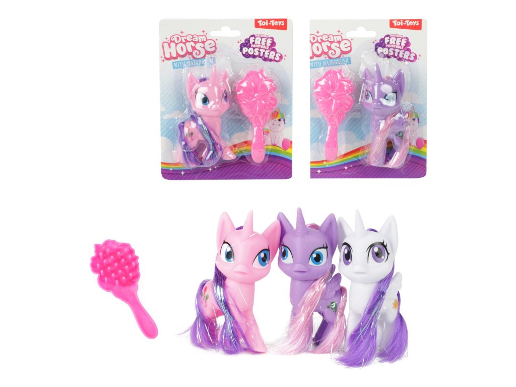 Jednorožec mini česací s hřebenem plast 10cm 3 barvy na kartě 12,5x15cm