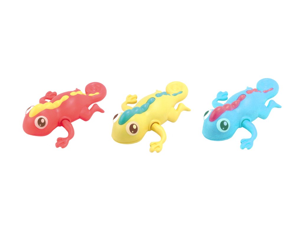 Ještěrka natahovací do vany. Rozměry 14x10x5 cm. 3 varianty - modrá, červená, žlutá.