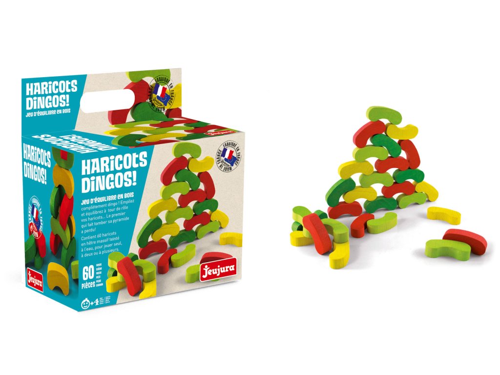 Ukládejte fazolky na sebe tak, aby pokládaná byla vždy rozdílné barvy než dvojice pod ní. Kdo stavbu shodí, prohrál. Trénujte hrou jemnou motoriku a soustředění. Vyrobeno ve Francii, z masivního bukového a borovicového dřeva francouzského původu. Součásti jsou ošetřeny výhradně za použití barev a laků na bázi vody. Baleno v kartonu potištěném rostlinnými inkousty. Hlavní vlastnosti:60 dílků z masivního dřevavyrobeno ve Francii