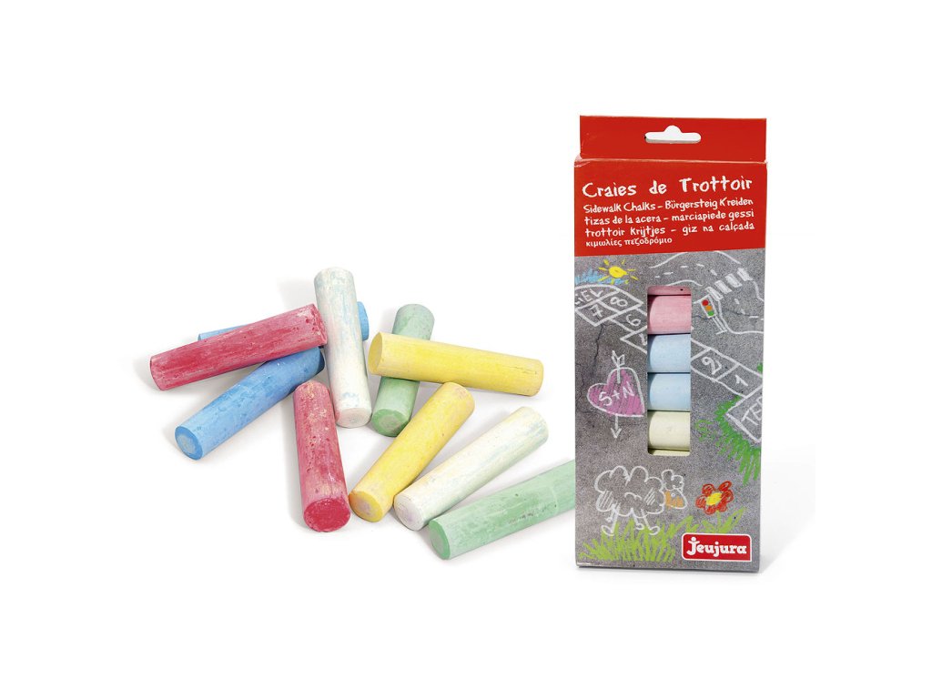 Sada kříd v kartonovém balení, vhodných ke kreslení na chodník. Hlavní vlastnosti:10 ks velkých barevných křídvhodné ke kreslení na chodník