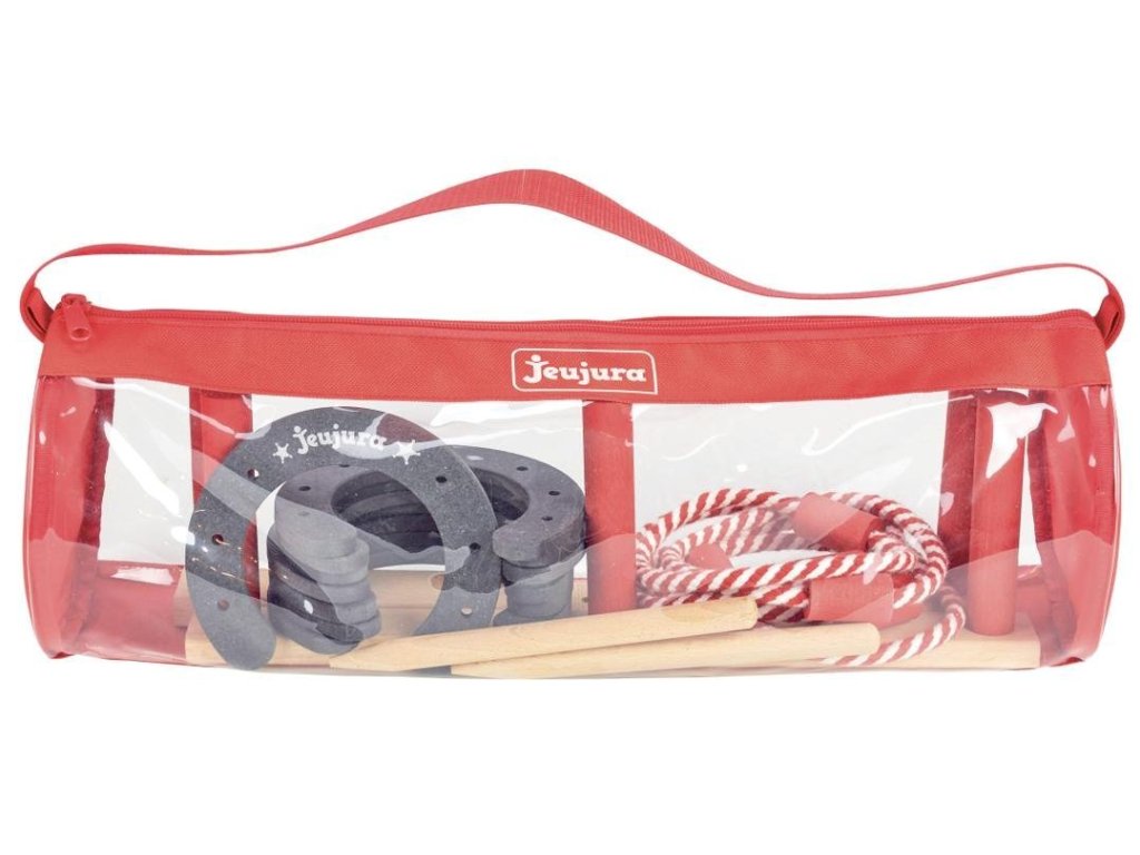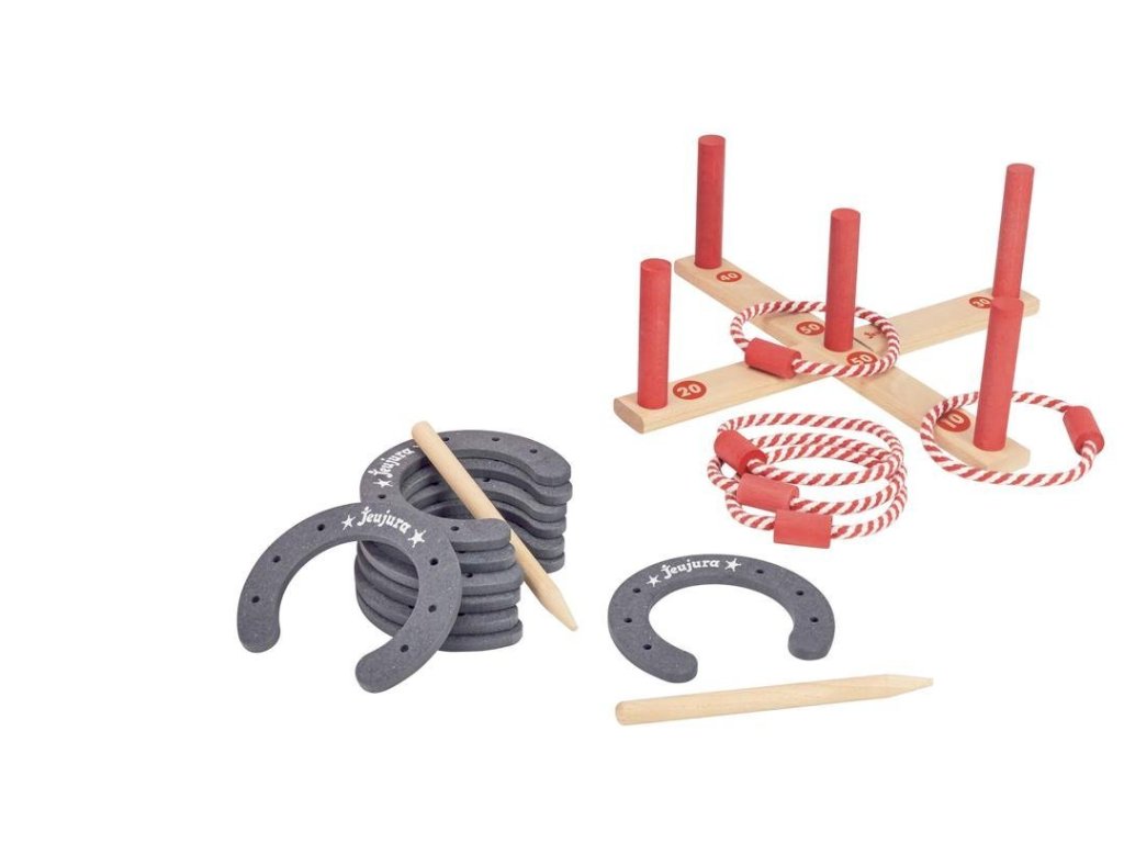 Tradiční hra s házením kroužky a podkovami na kříž, a to v praktickém balení na cesty. Vyrobeno ve Francii, z masivního bukového a borovicového dřeva francouzského původu. Součásti jsou ošetřeny výhradně za použití barev a laků na bázi vody. Hlavní vlastnosti:5 kroužků a kříž, 8 podkov a 2 kolíkysoučásti z masivního dřevapraktické balenívyrobeno ve Francii