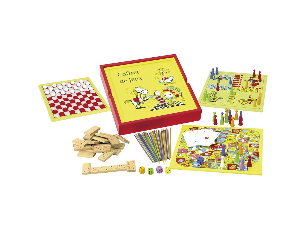 Soubor stolních, deskových her a karet v atraktivním a praktickém provedení. Obsahuje dámu, mlýn, husu, hady a žebříky i člověče nezlob se. Součástí je také mikádo, domino a balíček bridžových karet. Baleno v robustním boxu z masivního dřeva. Hlavní vlastnosti:stolní, deskové i karetní hryatraktivně ilustrovánopraktické balení