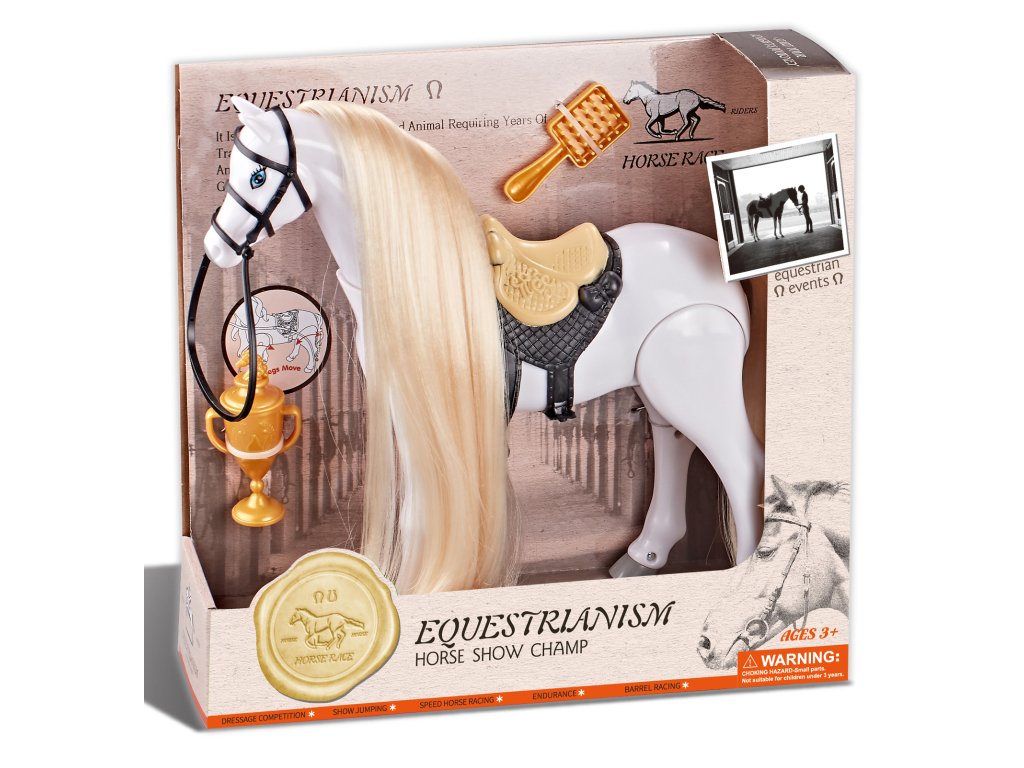 Jezdecký kůň bílý s příslušenstvím se zvukem - Hipický šampion