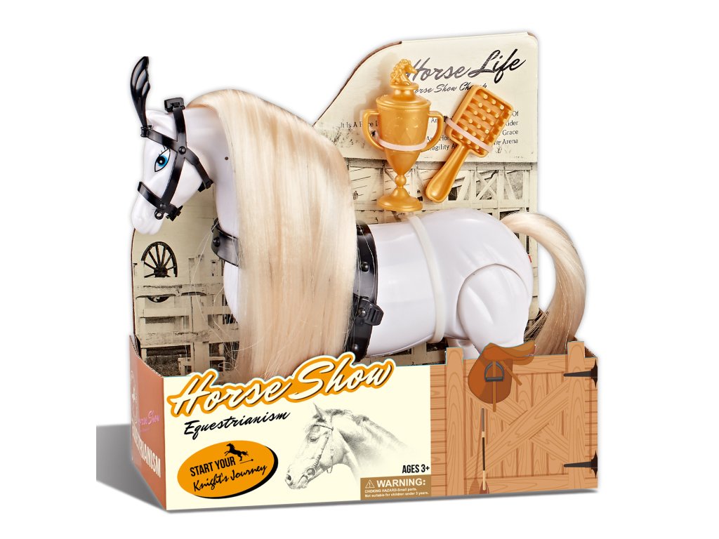 Jezdecký kůň bílý s příslušenstvím se zvukem - Koňská show