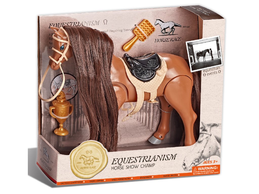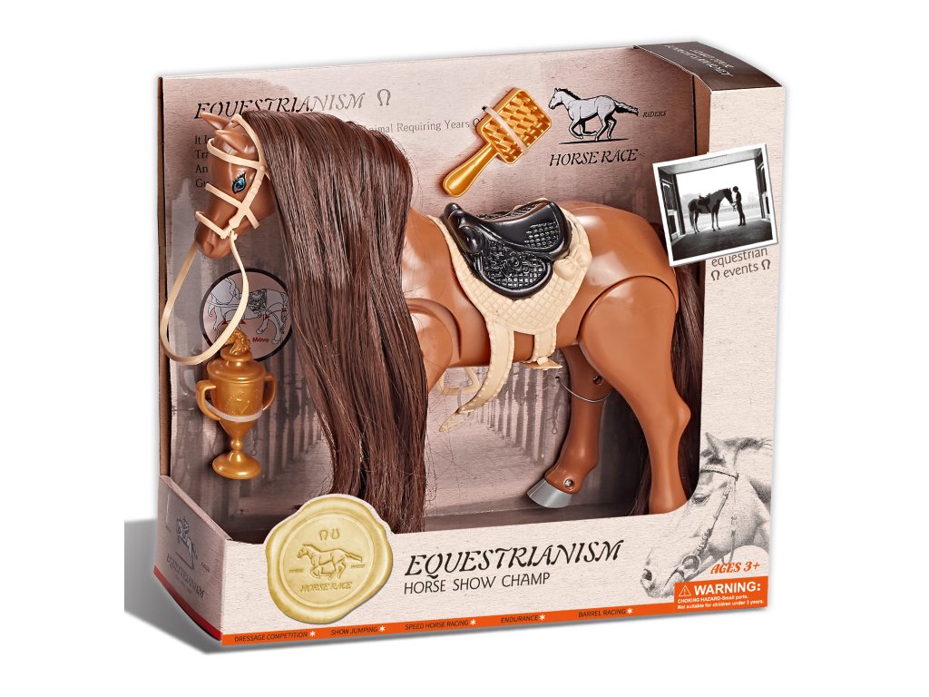 Jezdecký kůň hnědý s příslušenstvím se zvukem - Hipický šampion
