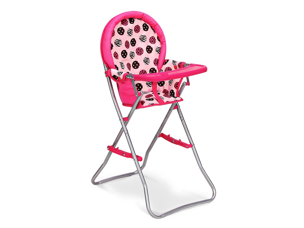Krásná malá židlička pro panenky, velmi kvalitní provedení. Židlička v menší velikosti, do kterého se přesně vejde tvoje oblíbená panenka. Konstrukce židličky je kovová – velmi pevná! Plastové prvky, textilní části a popruhy. Látkové části židličky lze sundat a vyprat! ? skládatelná – lze lehce složit a tím pádem nezabírá místo ? popruhy na panenku ? plastový tác na jídlo Věk: 3+ – Rozměry: 40,5 × 66 × 30,5cm.