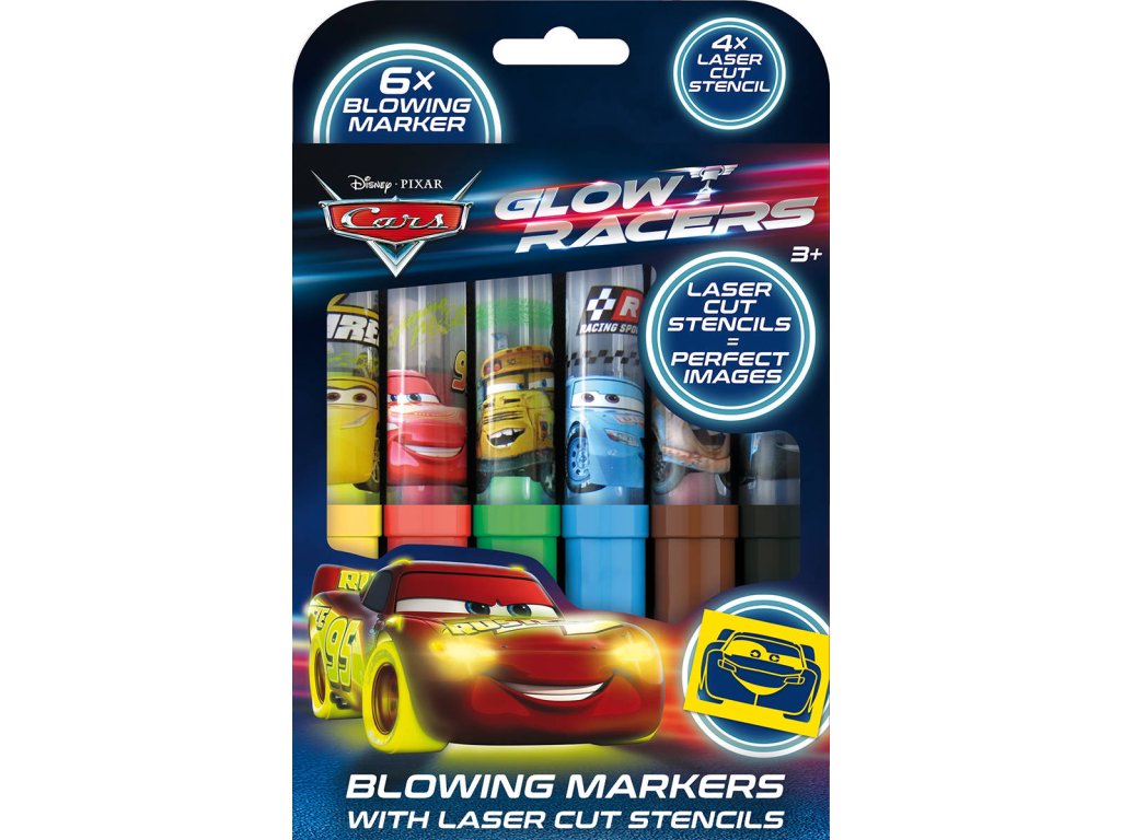 JIRI MODELS Fixy foukací 6ks Auta (Cars) set se 4 šablonami