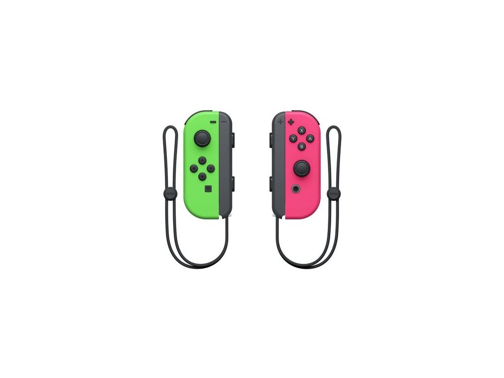 Levý a pravý Joy-Con v neonově zelené a růžové barvě