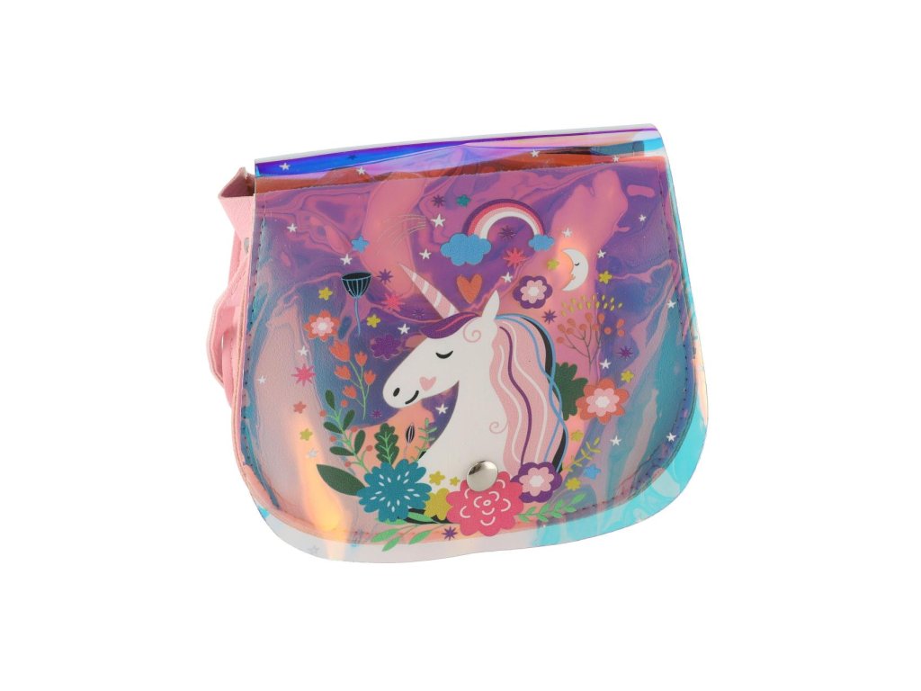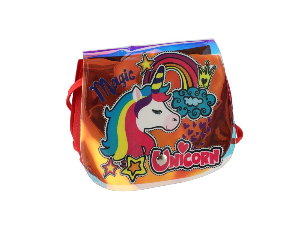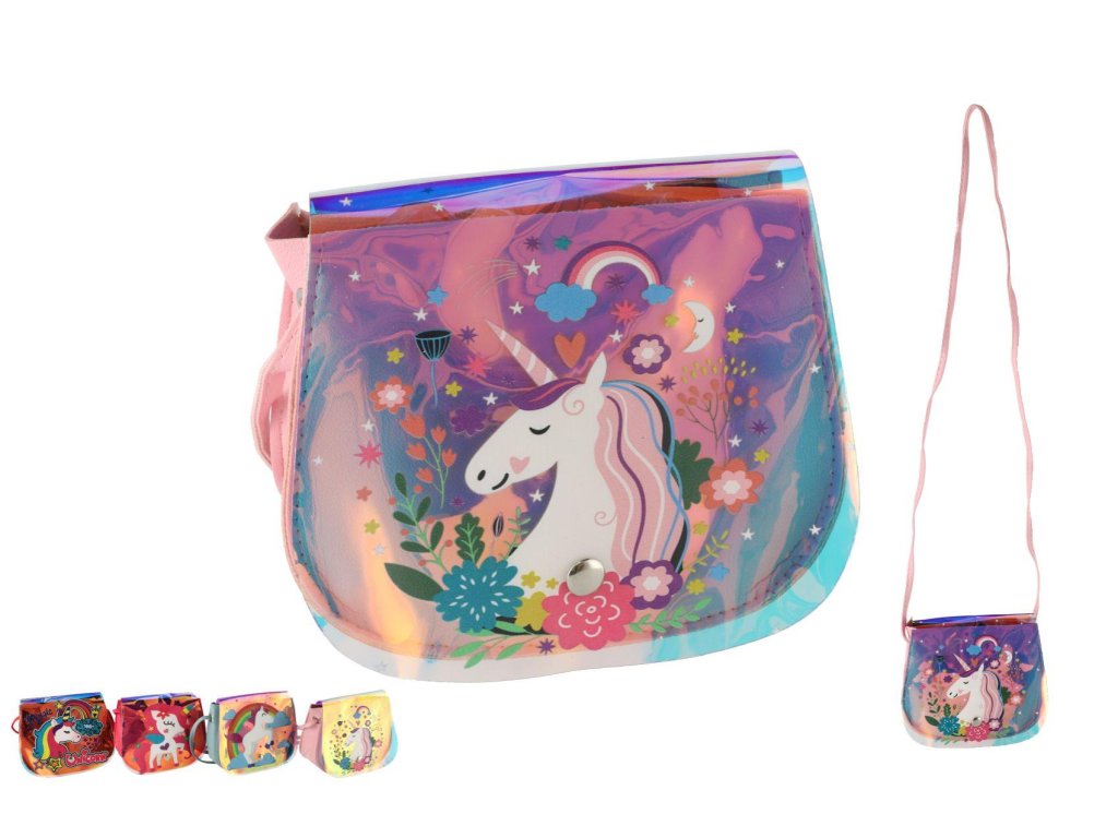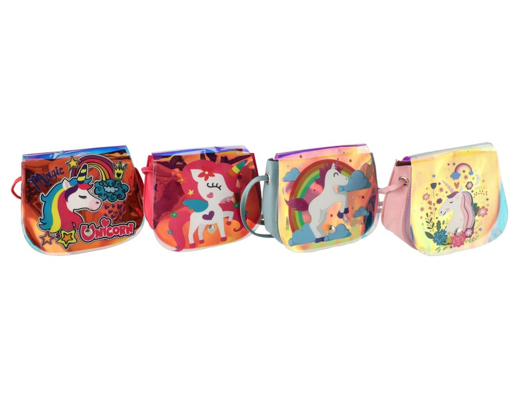 Kabelka/Taška duhová jednorožec plast 4 barvy v sáčku 17x15x3cm