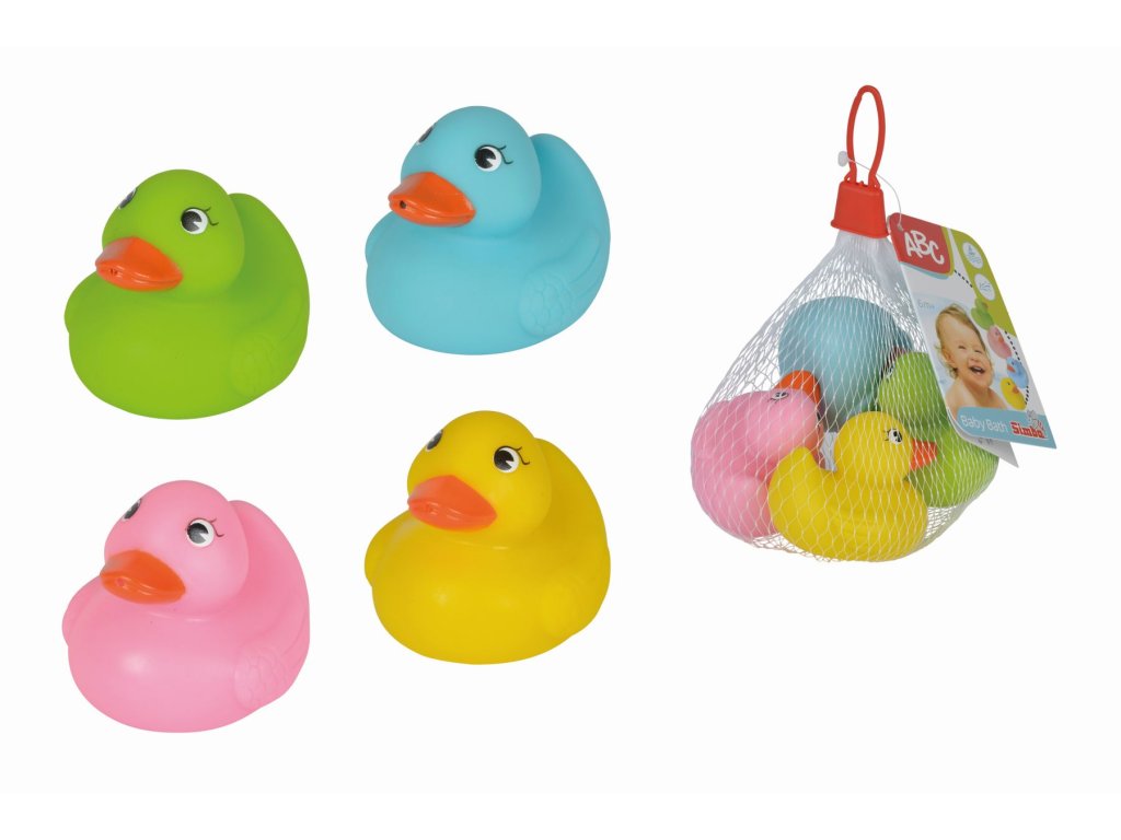 4 kachničky do vany v síťce. 4 různé barvy v každém balení: žlutá, modrá, růžová a zelená. Velikost kachničky 5 cm.