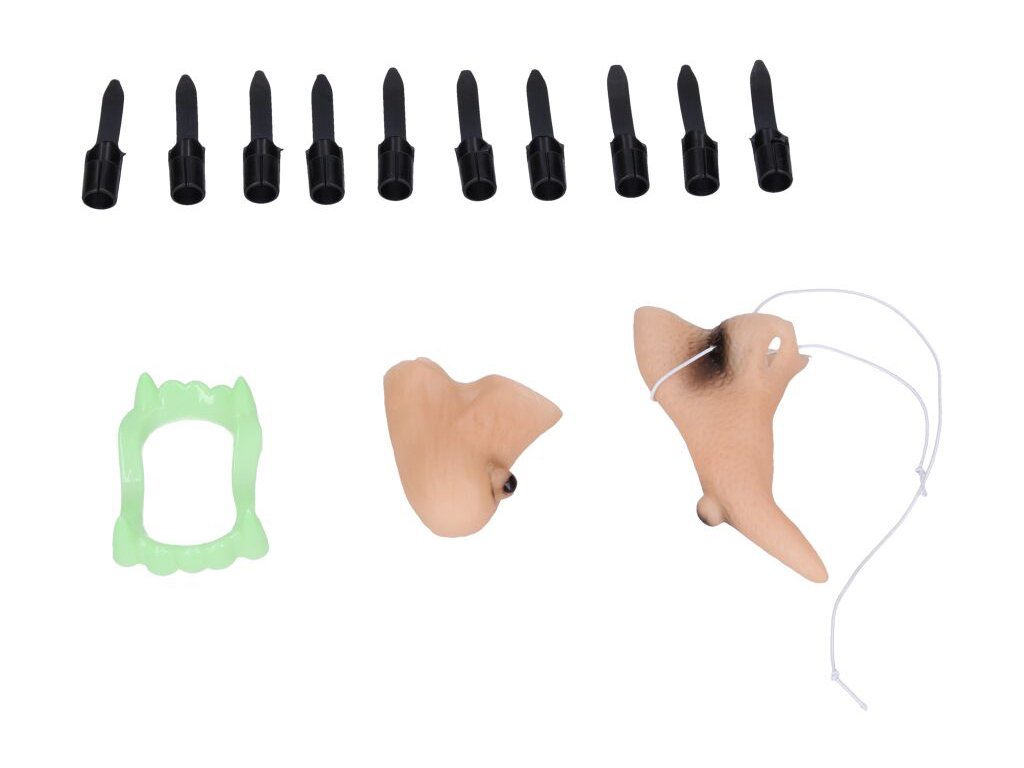 Obsah balení: klobouk, nasazovací prst 10ks, chrup, brada, nos