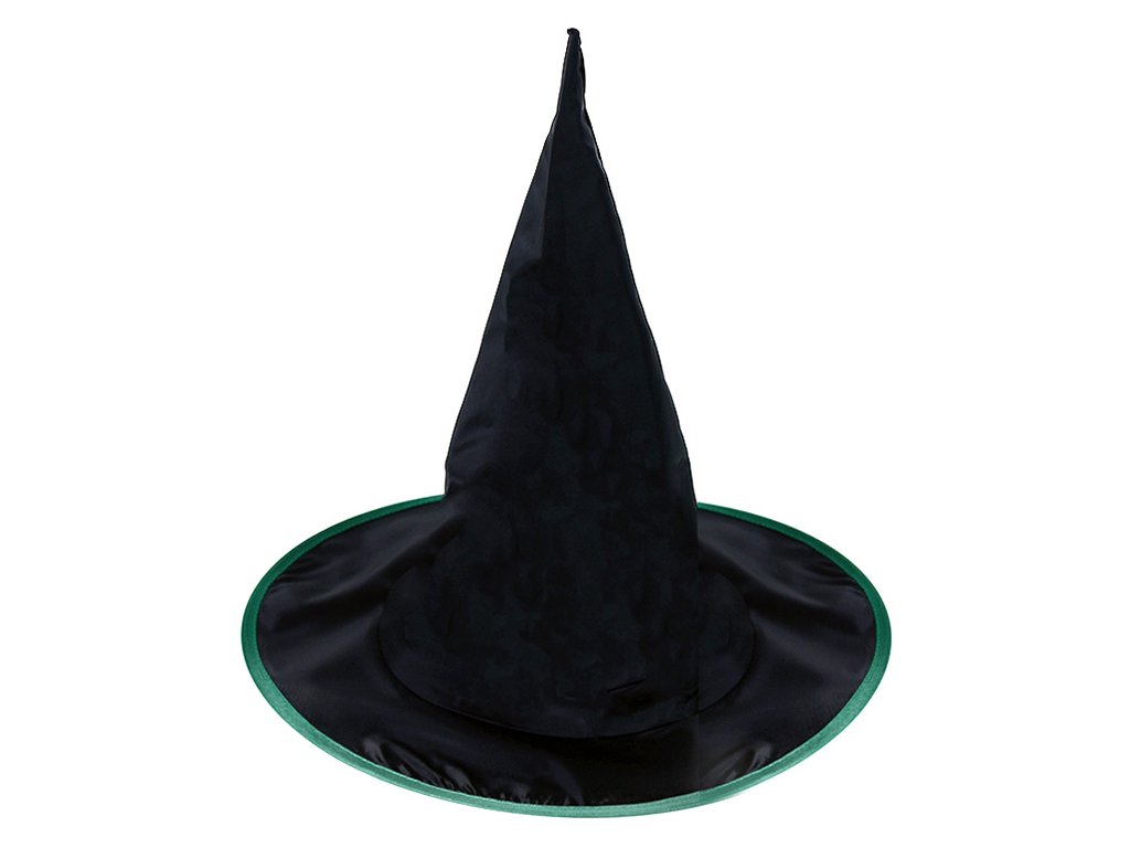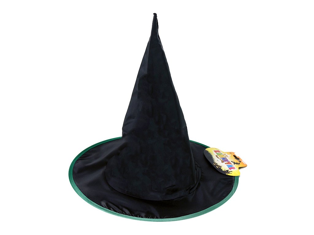 Čarodějnický klobouk nesmí chybět ve tvé karnevalové sbírce! Klobouk je vyroben z černé šusťákoviny a je dekorován zeleným lemem.