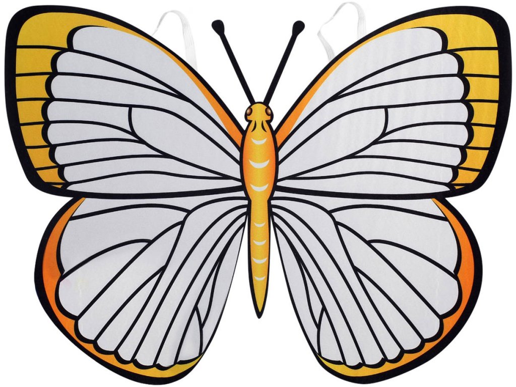 Nasazovací vybarvovací motýlí křídla na gumičku, kreativní set s fixami k vybarvení. Lze použít jako doplněk ke kostýmu na karneval.