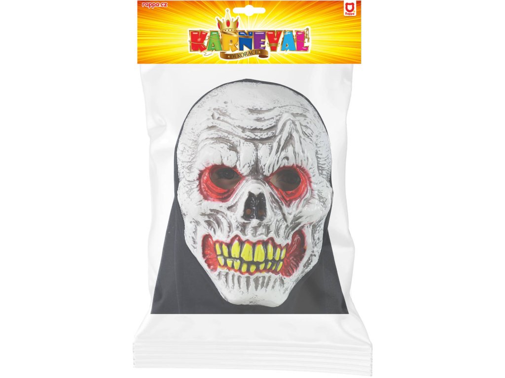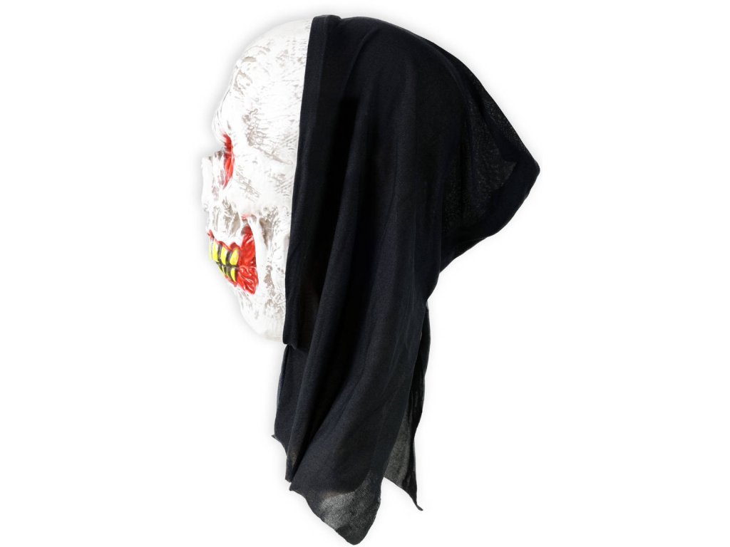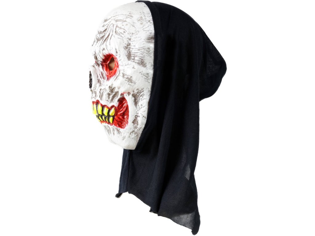Děsivá maska na obličej s motivem Kostlivec je parádním doplňkem na karnevalový večírek nebo Halloween párty. Plastová maska je doplněna textilním šátkem přes hlavu. Baleno v sáčku.