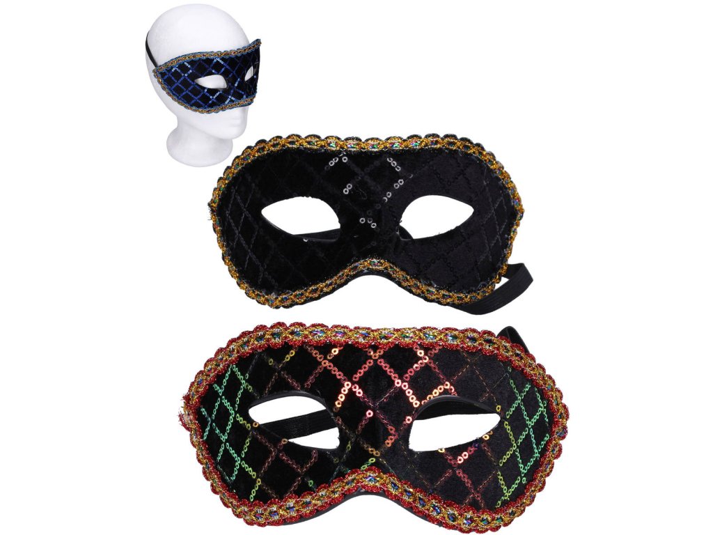 KARNEVAL Maska škraboška třpytivá s flitry na obličej 3 barvy