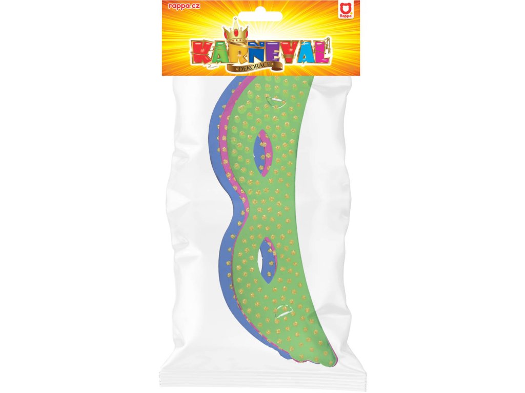 Karnevalová maska - škraboška o velikosti 21cm se zlatými tečkami, doplněk na karneval, baleno po 5ti kusech v různých barvách.