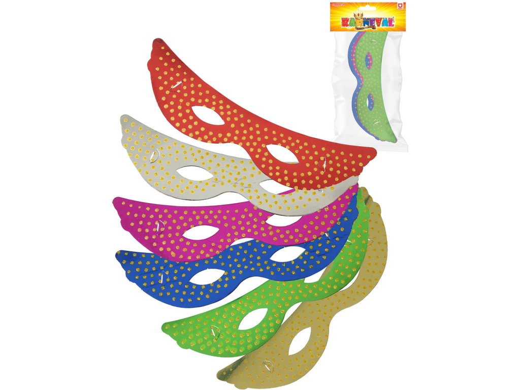 KARNEVAL Maska škraboška zlaté tečky set 6 barev v sáčku