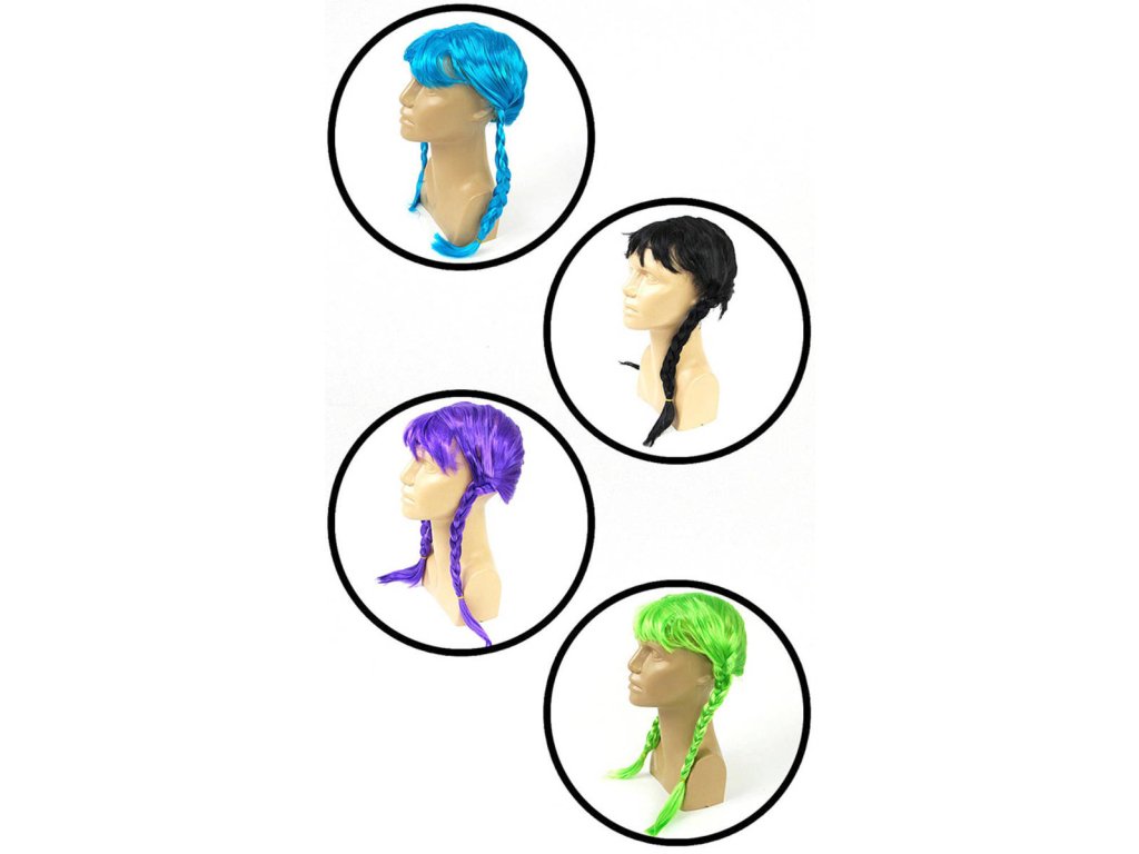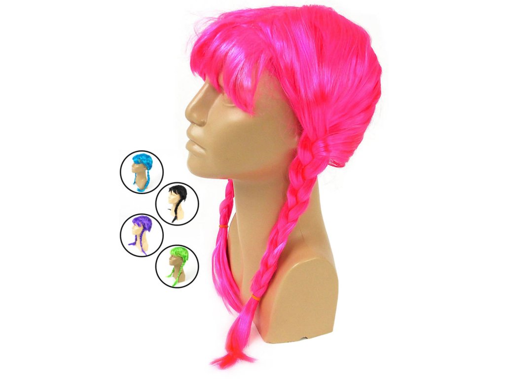 Barevná paruka, dlouhé vlasy s copánky ve výrazných barvách, vhodné jako doplněk ke kostýmu na karneval atd. 5 barevných variant.