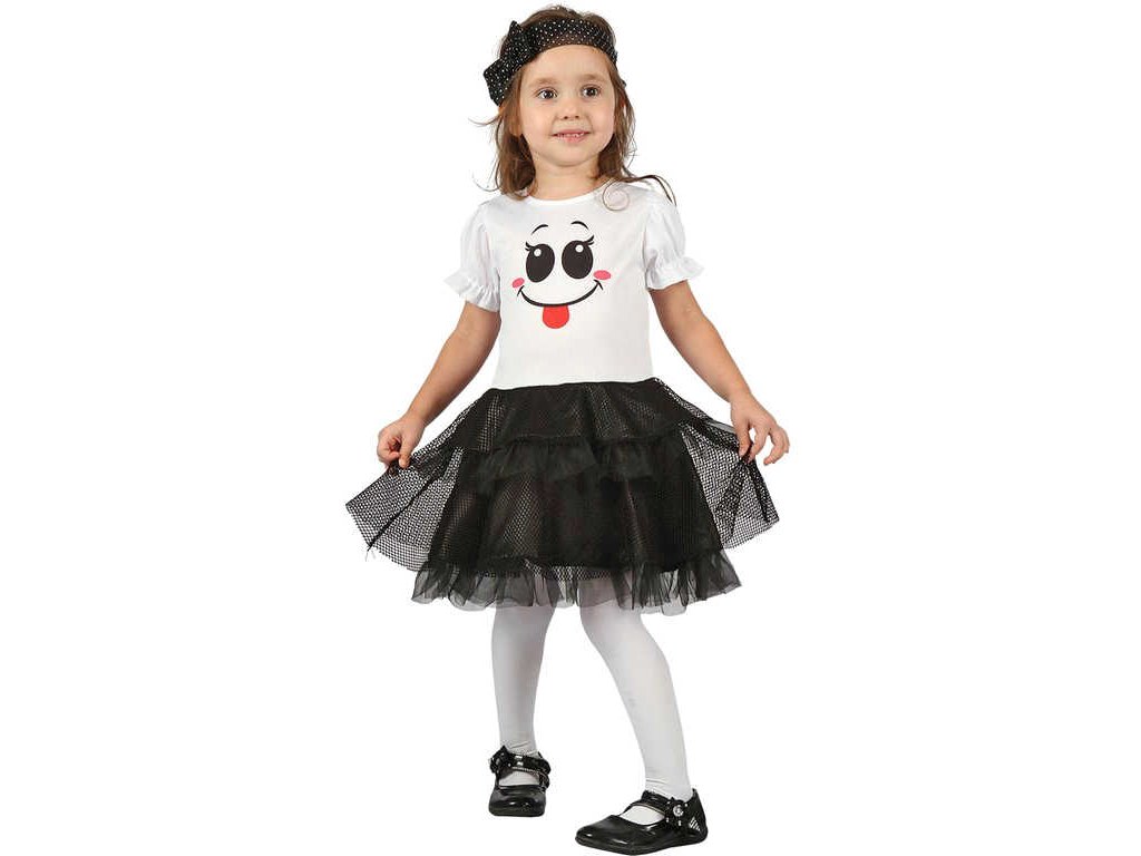 Designový dětský černobílý holčičí kostým se smajlíkem, na karneval, z kvalitního a příjemného materiálu v provedení Duch.
