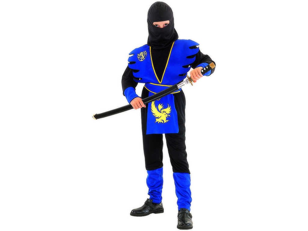 Černomodré dětské šaty s kuklou na hlavu - obleček na karneval pro všechny malé ninja bojovníky.
