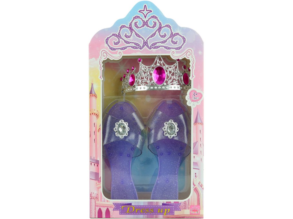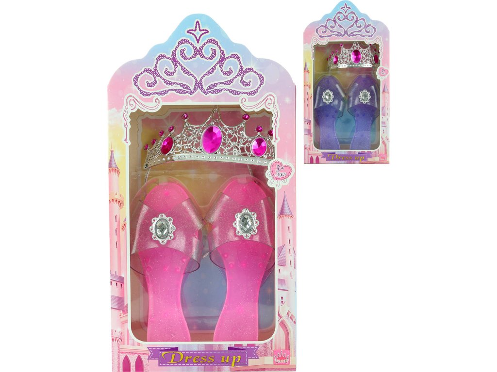 Barevné třpytivé střevíčky a stříbrná zdobená korunka, jako doplněk ke karnevalovému kostýmu "Princezna". 2 barevné varianty.