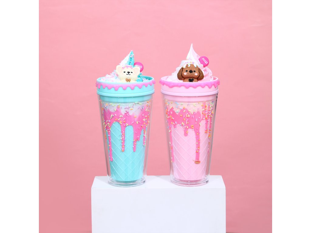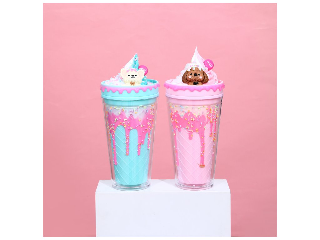 Kelímek s víčkem a brčkem Zmrzlinový Medvídek 480ml - více variant