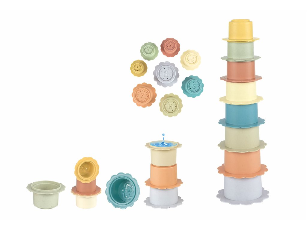 Kelímky stohovací věž, květ. Balení obsahuje 8 ks. Rozměry postavené věže 33,3x10,2x10,2 cm.